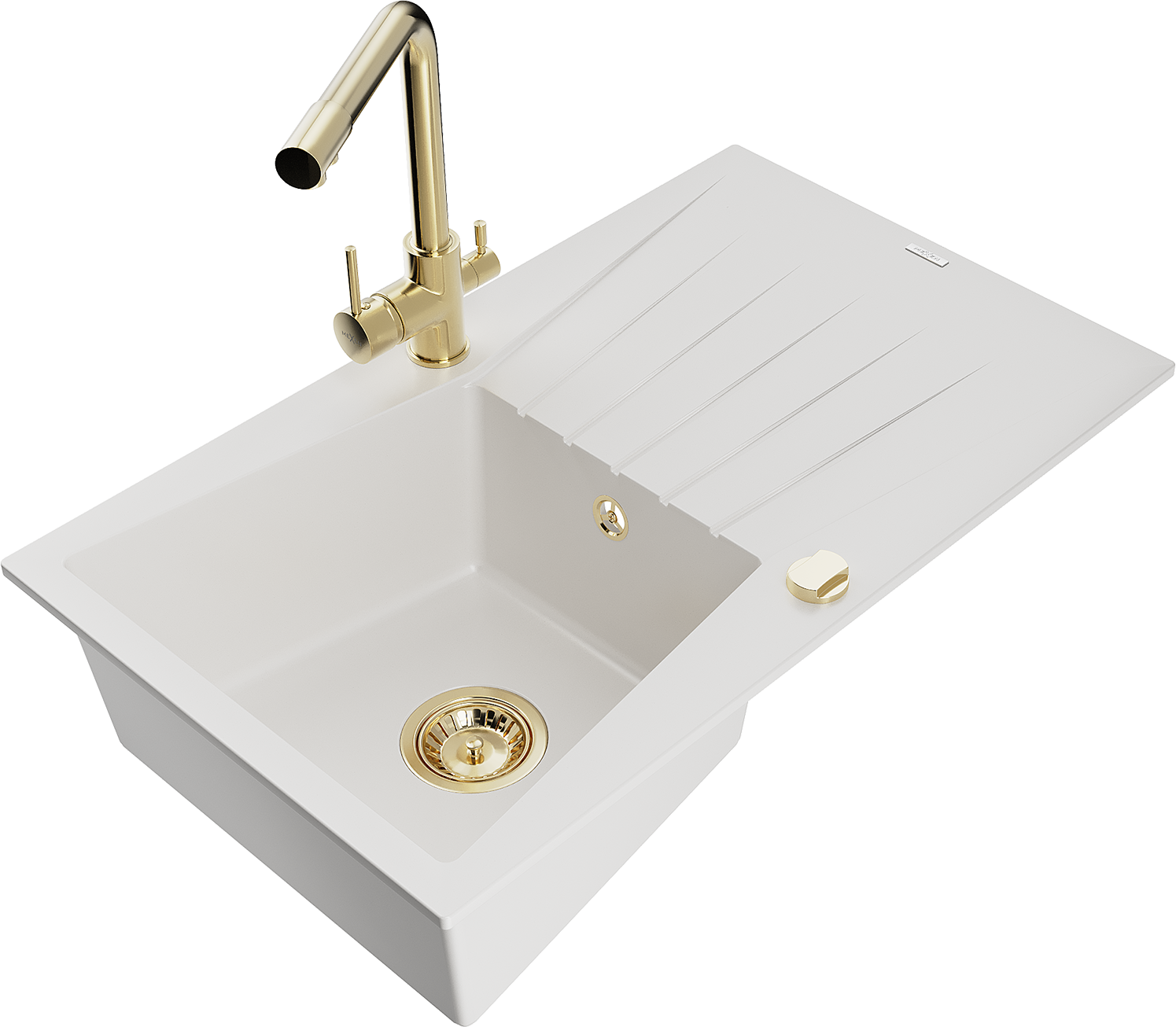 Mexen Cesar single-bowl granite sink with drainer and Duero kitchen tap, white - 6514-20-671600-50