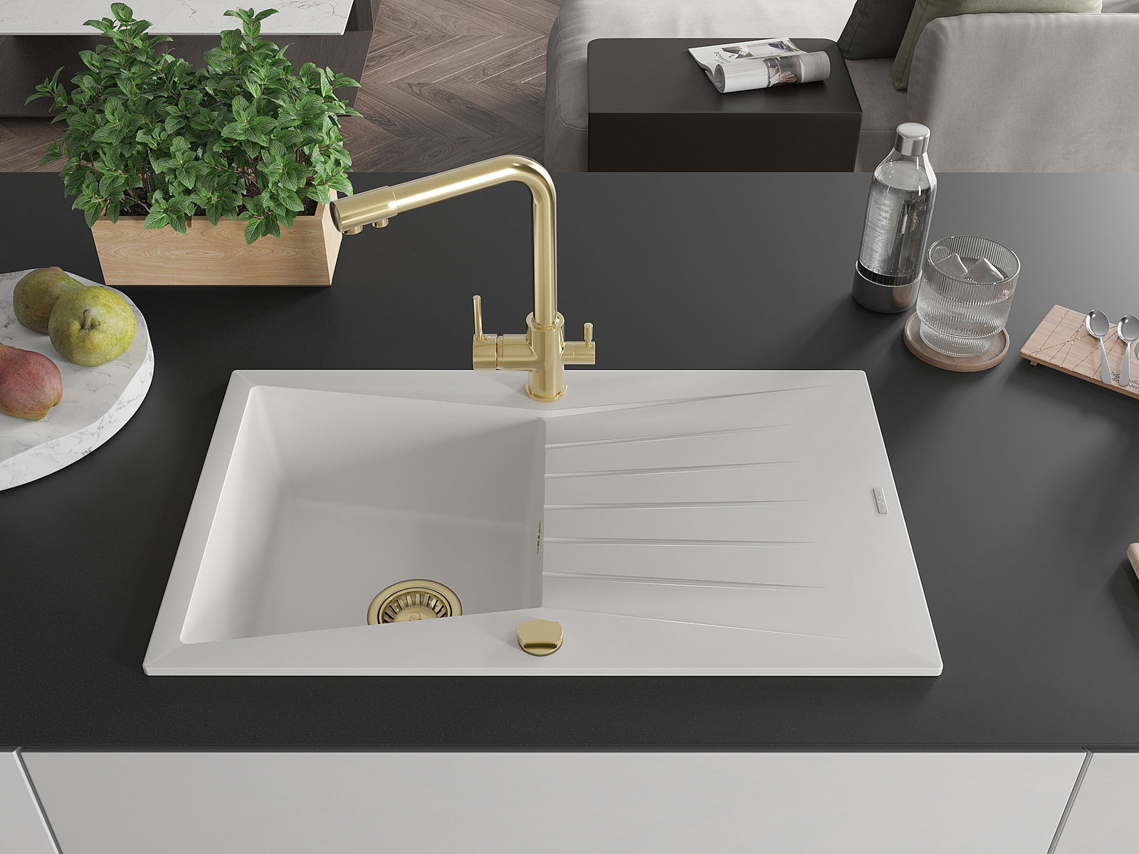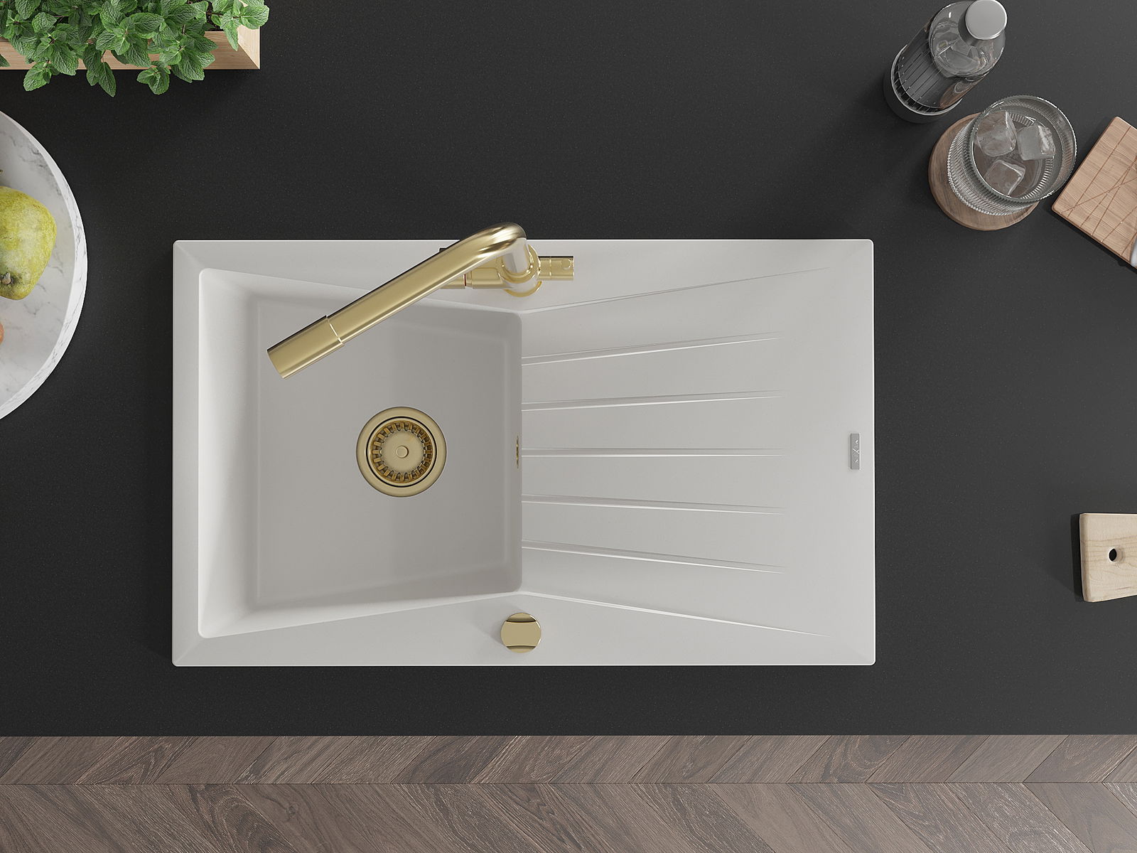Choosing a sink with a draining board is a practical solution that allows you to set aside washed dishes or vegetables and fruits. The draining board makes daily cooking easier and helps maintain order in the kitchen.