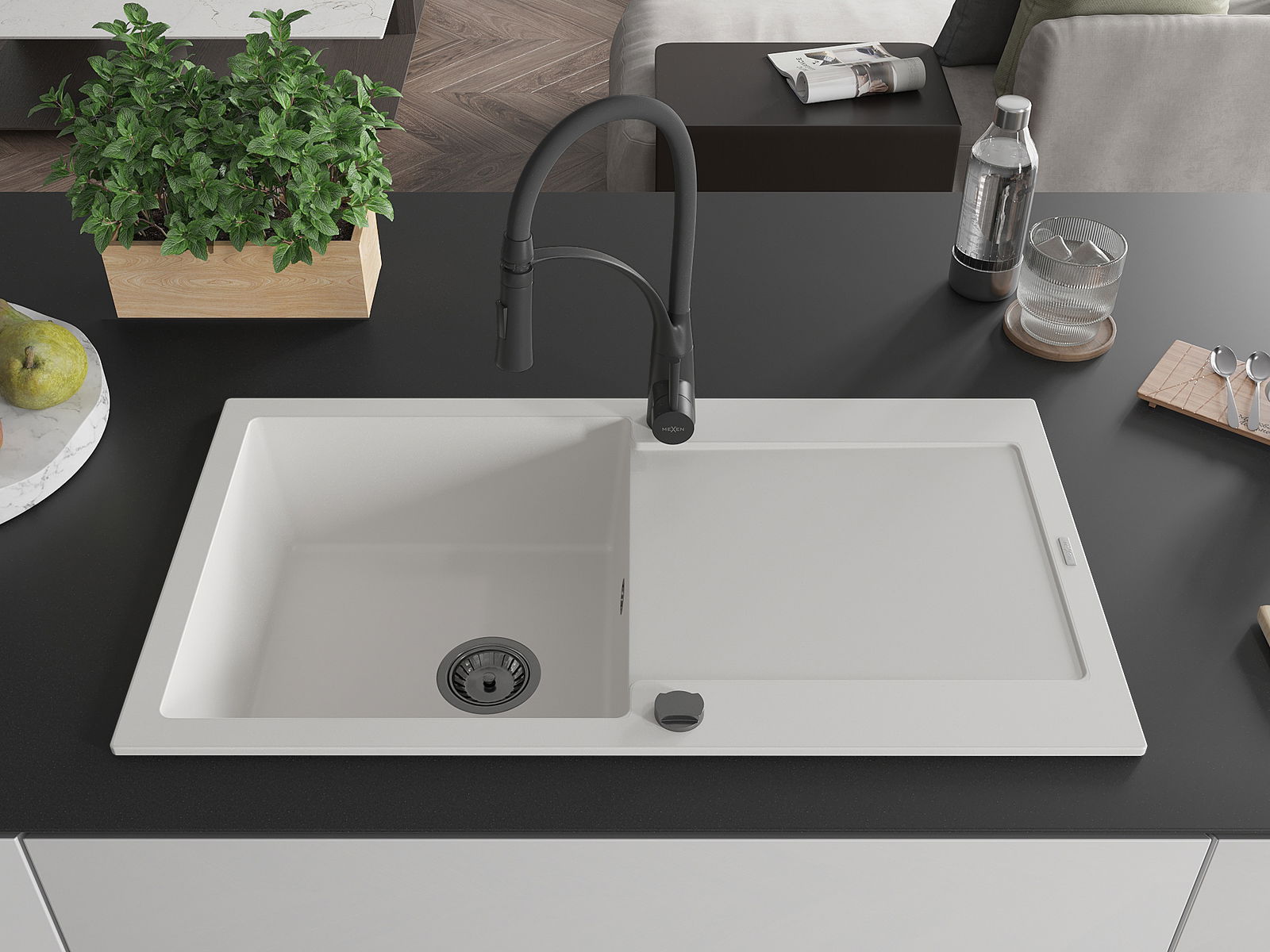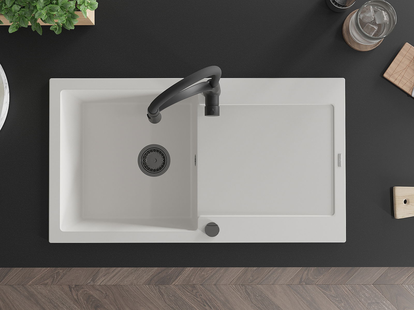 The sink is made of high quality granite. It is an elegant and, above all, practical complement to every kitchen, regardless of its style. High quality and granite durability ensure many years of use.