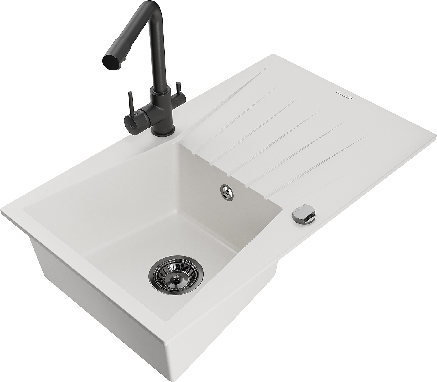 Choosing a sink with a draining board is a practical solution that allows you to set aside washed dishes or vegetables and fruits. The draining board makes daily cooking easier and helps maintain order in the kitchen.
