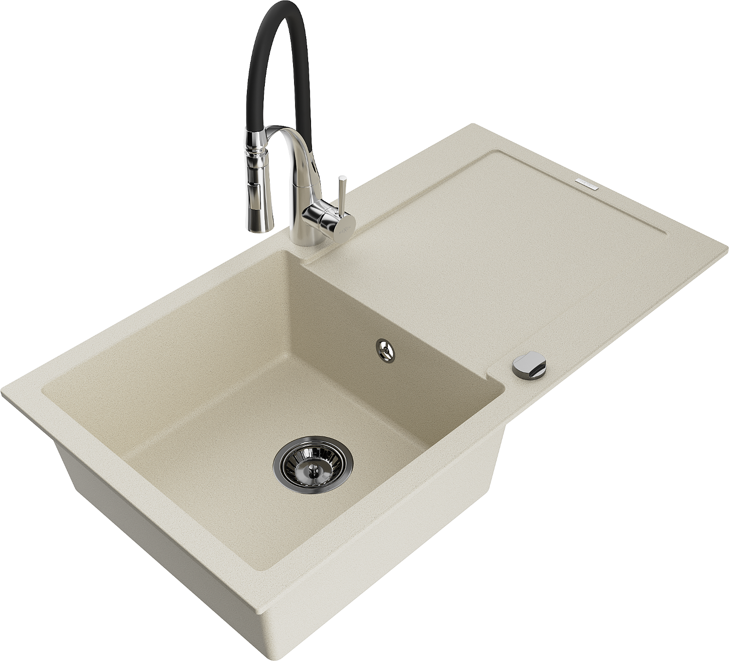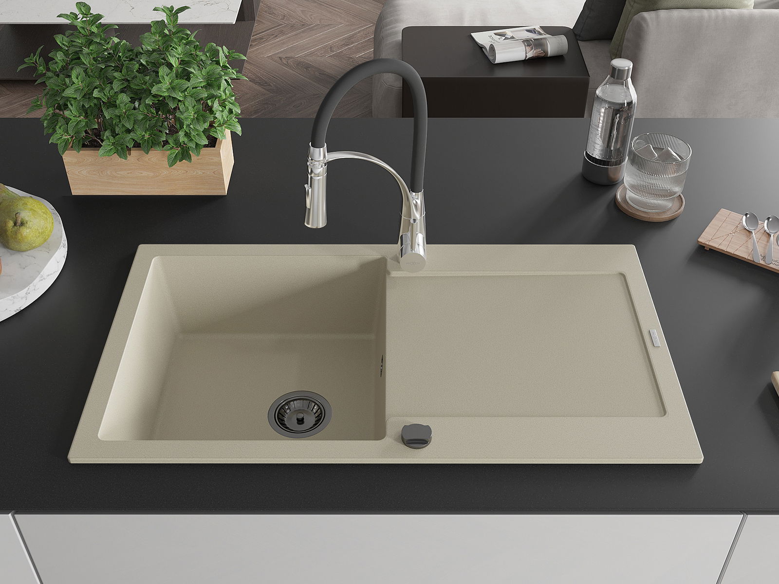 The sink is made of high quality granite. It is an elegant and, above all, practical complement to every kitchen, regardless of its style. High quality and granite durability ensure many years of use.