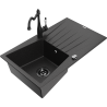 Mexen Cesar granite sink, single bowl with drainer and Carla kitchen tap, black - 6514-77-670700-70-B