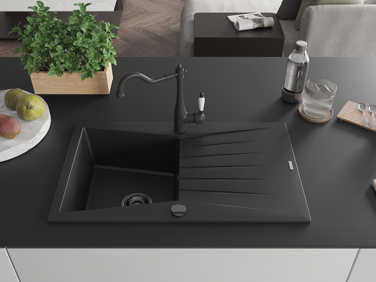 The sink is made of high quality granite. It is an elegant and, above all, practical complement to every kitchen, regardless of its style. High quality and granite durability ensure many years of use.