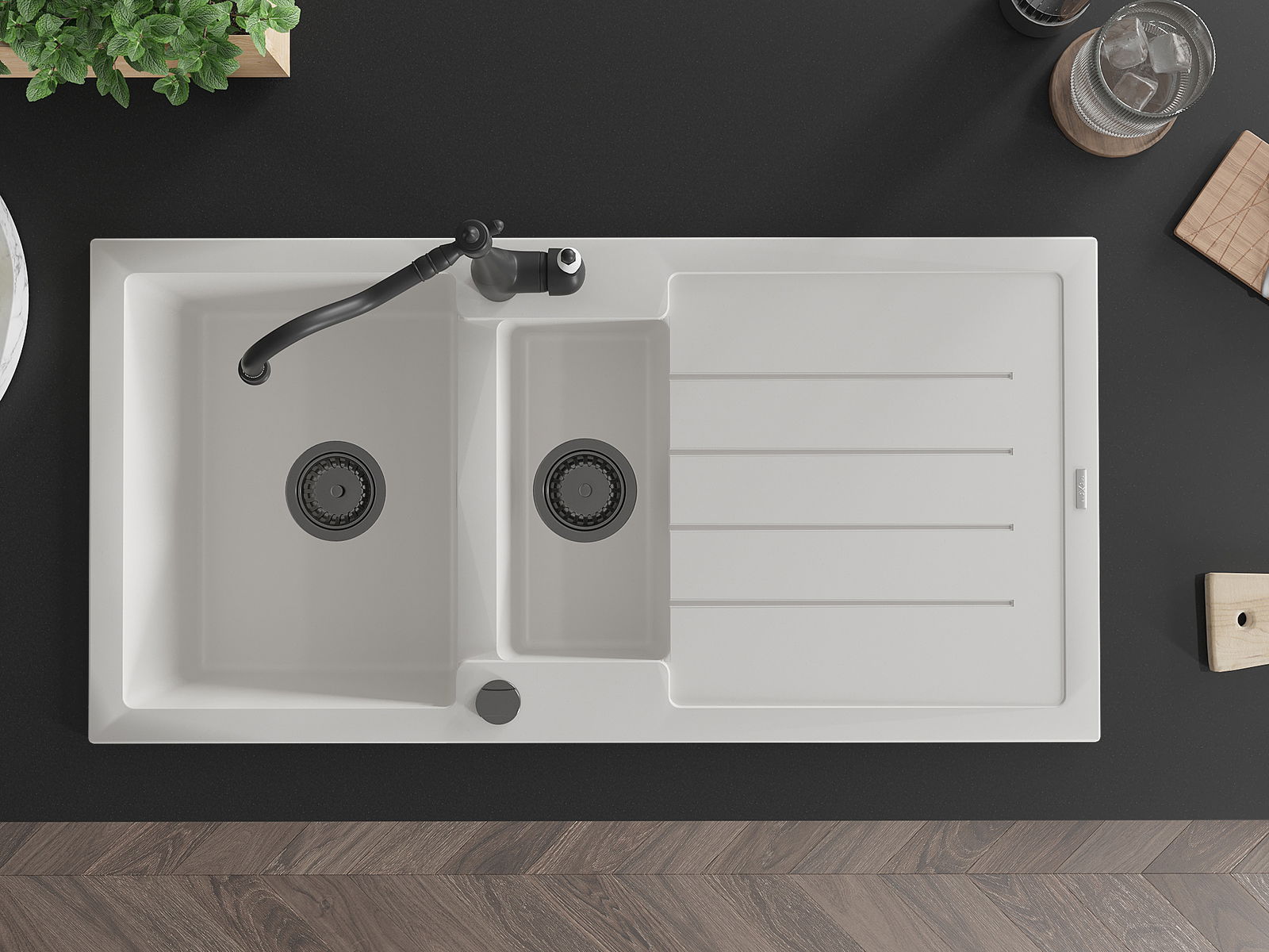 The sink is made of high quality granite. It is an elegant and, above all, practical complement to every kitchen, regardless of its style. High quality and granite durability ensure many years of use.