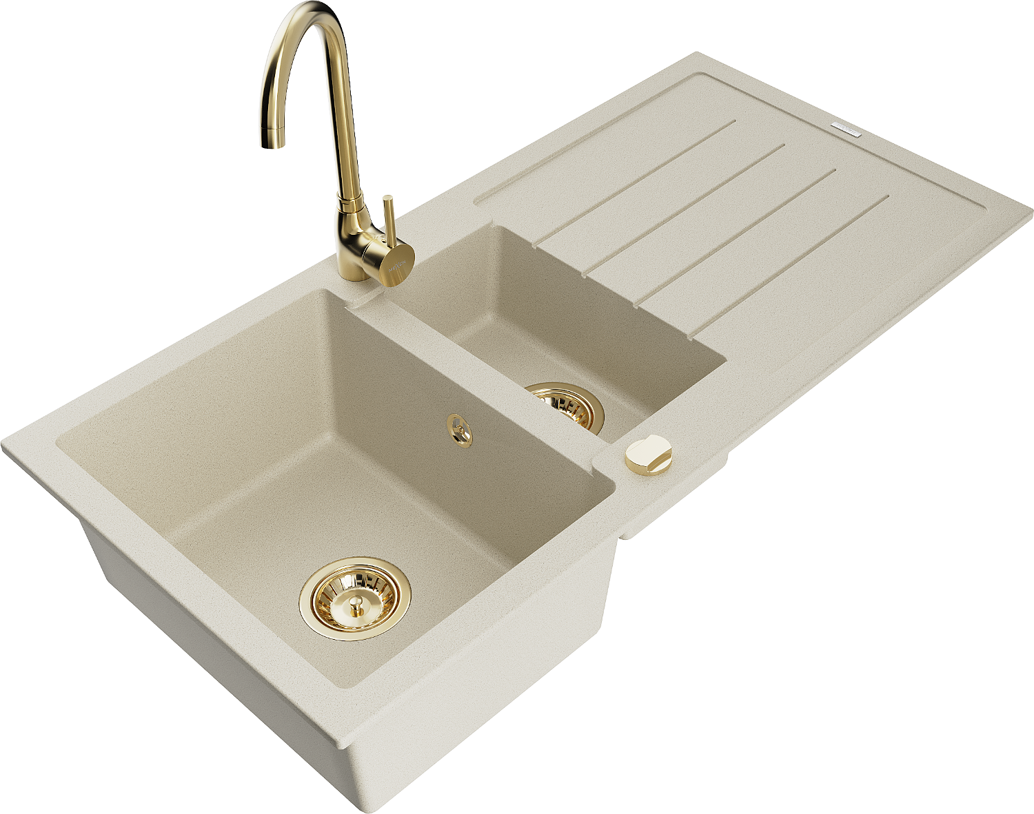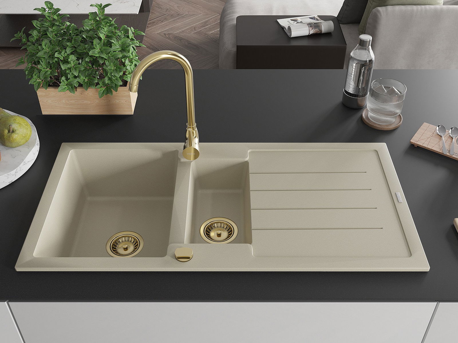 Mexen Andres granite sink 1.5-bowl with drainer and Telma kitchen tap, beige - 6515-69-670200-50