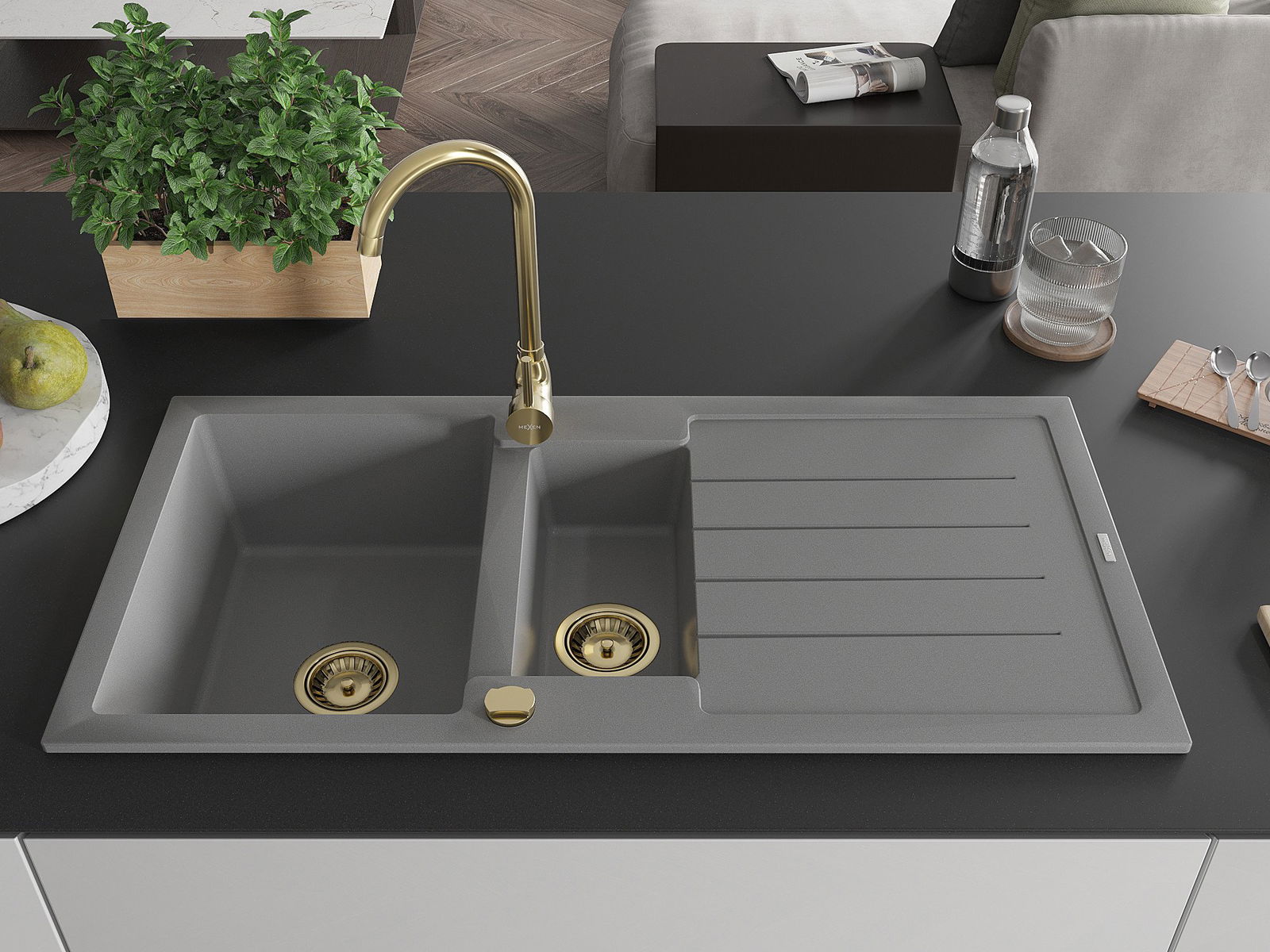 The surface of the sink is resistant to stains and discoloration, thanks to which it is easy to clean and retains its color for a long time. Aesthetic and practically complementing every kitchen.