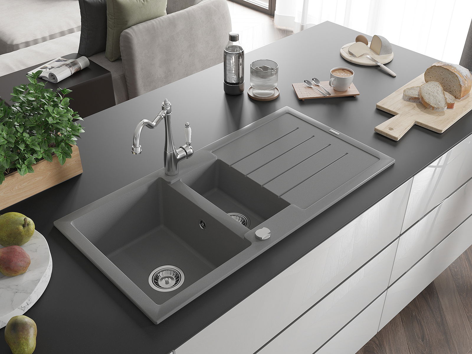 The sink is made of high quality granite. It is an elegant and, above all, practical complement to every kitchen, regardless of its style. High quality and granite durability ensure many years of use.