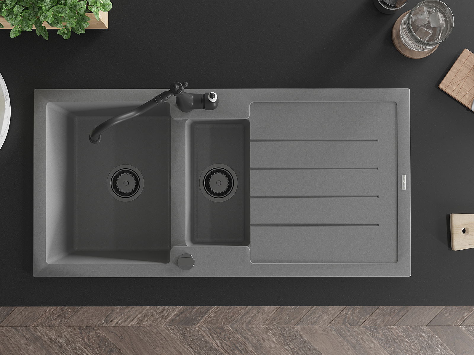 The sink is made of high quality granite. It is an elegant and, above all, practical complement to every kitchen, regardless of its style. High quality and granite durability ensure many years of use.