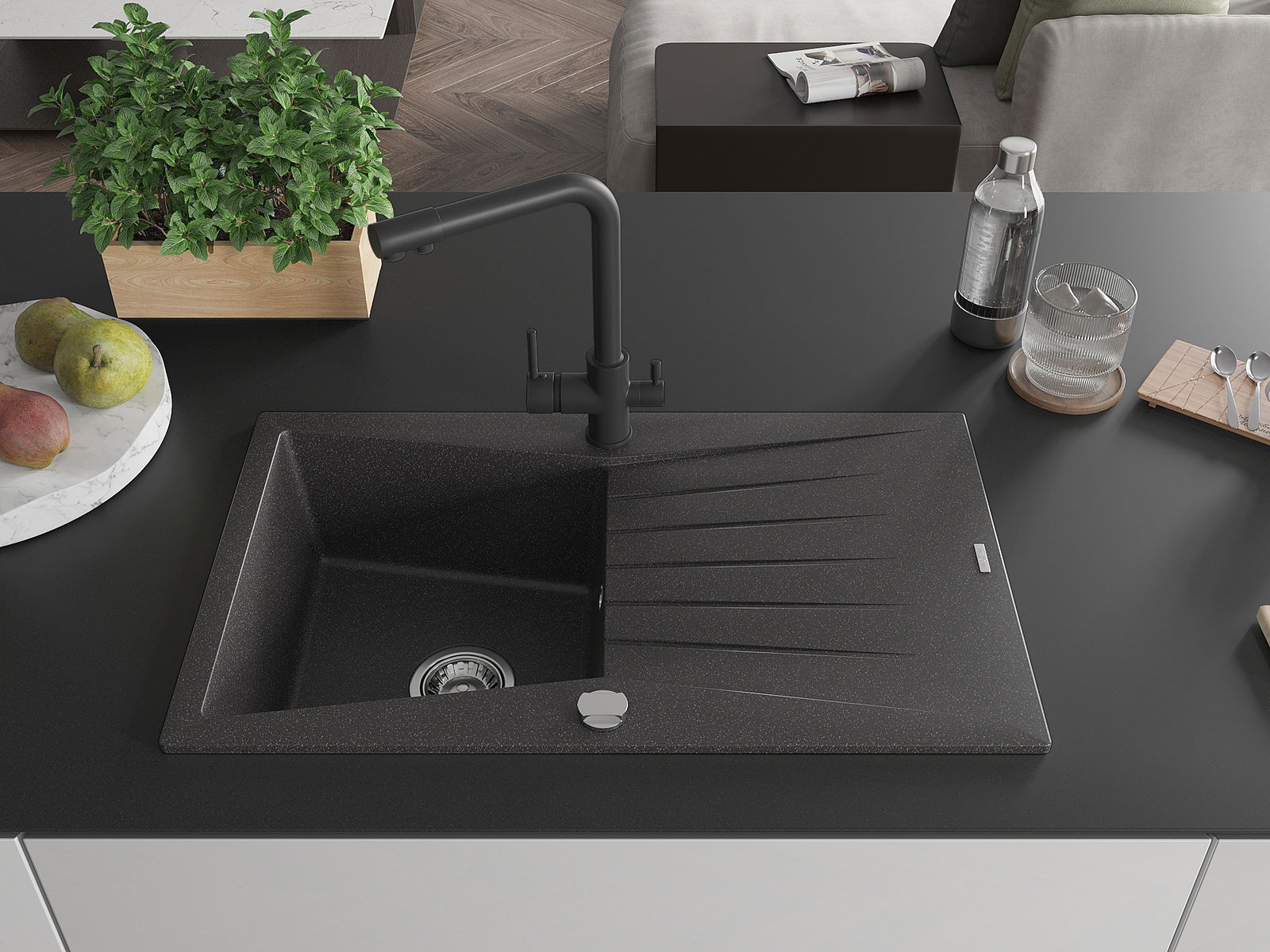 The sink is made from high-quality granite. It serves as an elegant and, above all, practical addition to any kitchen, regardless of its style. The high quality and durability of granite ensure many years of use.