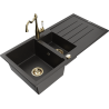 Mexen Andres granite sink 1.5-bowl with drainer and Carla kitchen tap, speckled black - 6515-76-670700-50