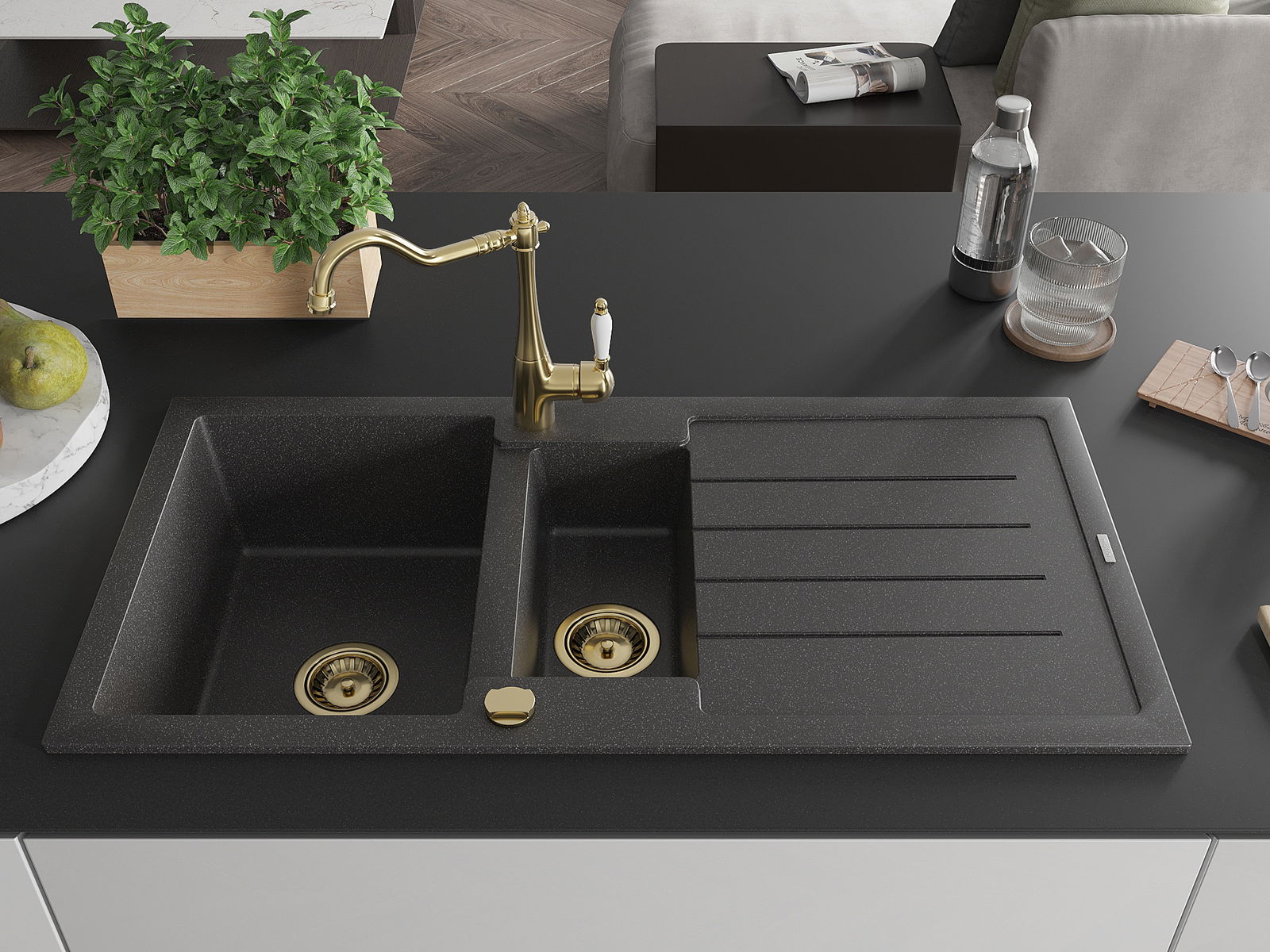 The sink is made of high quality granite. It is an elegant and, above all, practical complement to every kitchen, regardless of its style. High quality and granite durability ensure many years of use.