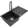 Mexen Leo granite sink 1-bowl with drainer and Aster kitchen tap, black speckled - 6501-76-73450-07