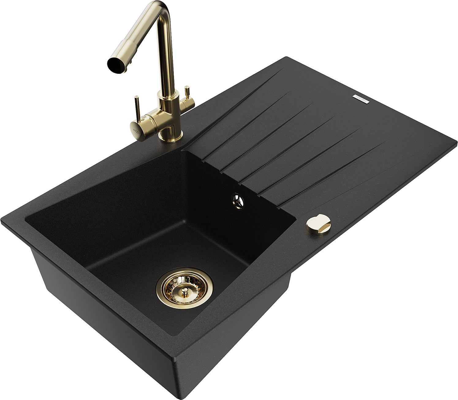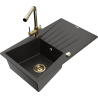 Mexen Cesar granite sink 1-bowl with drainer and Duero kitchen tap, black - 6514-77-671600-50