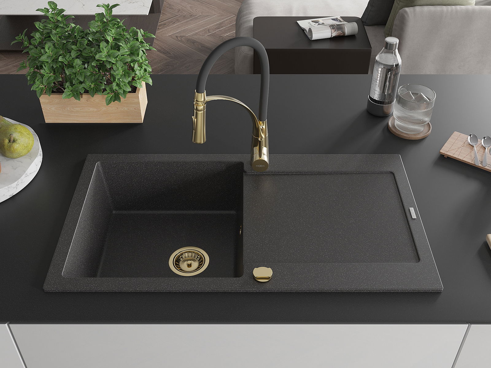 The surface of the sink is resistant to stains and discoloration, thanks to which it is easy to clean and retains its color for a long time. Aesthetic and practically complementing every kitchen.