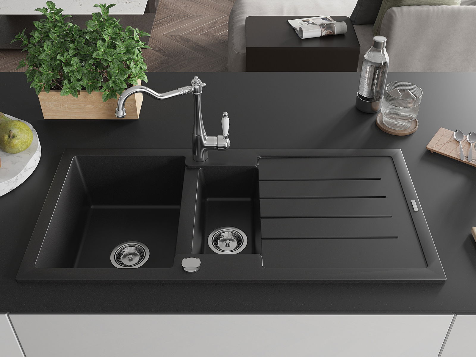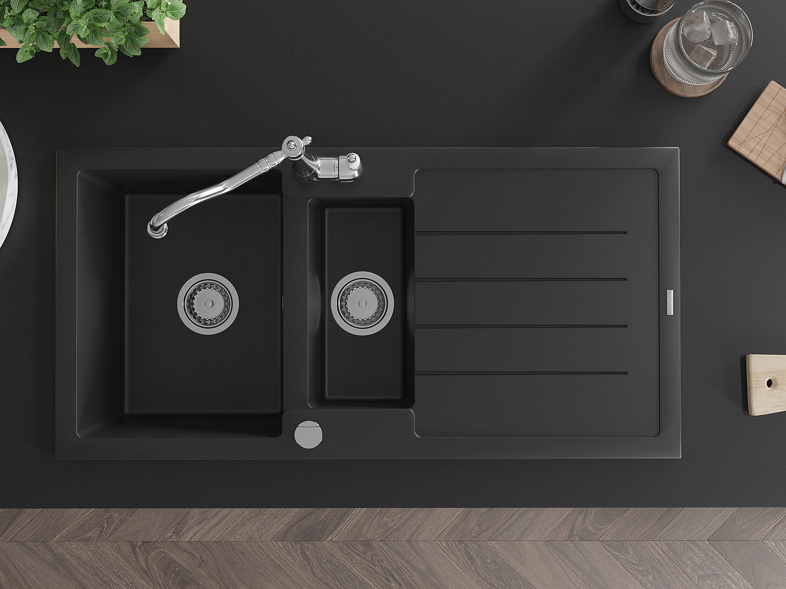 The sink is made of high quality granite. It is an elegant and, above all, practical complement to every kitchen, regardless of its style. High quality and granite durability ensure many years of use.