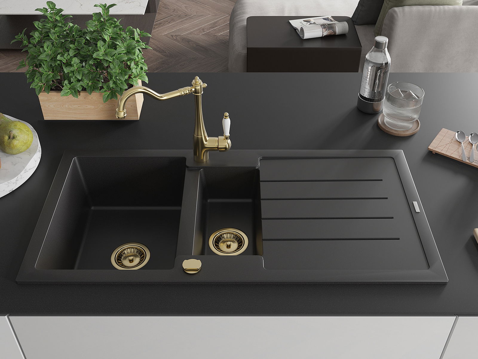 The sink is made of high quality granite. It is an elegant and, above all, practical complement to every kitchen, regardless of its style. High quality and granite durability ensure many years of use.