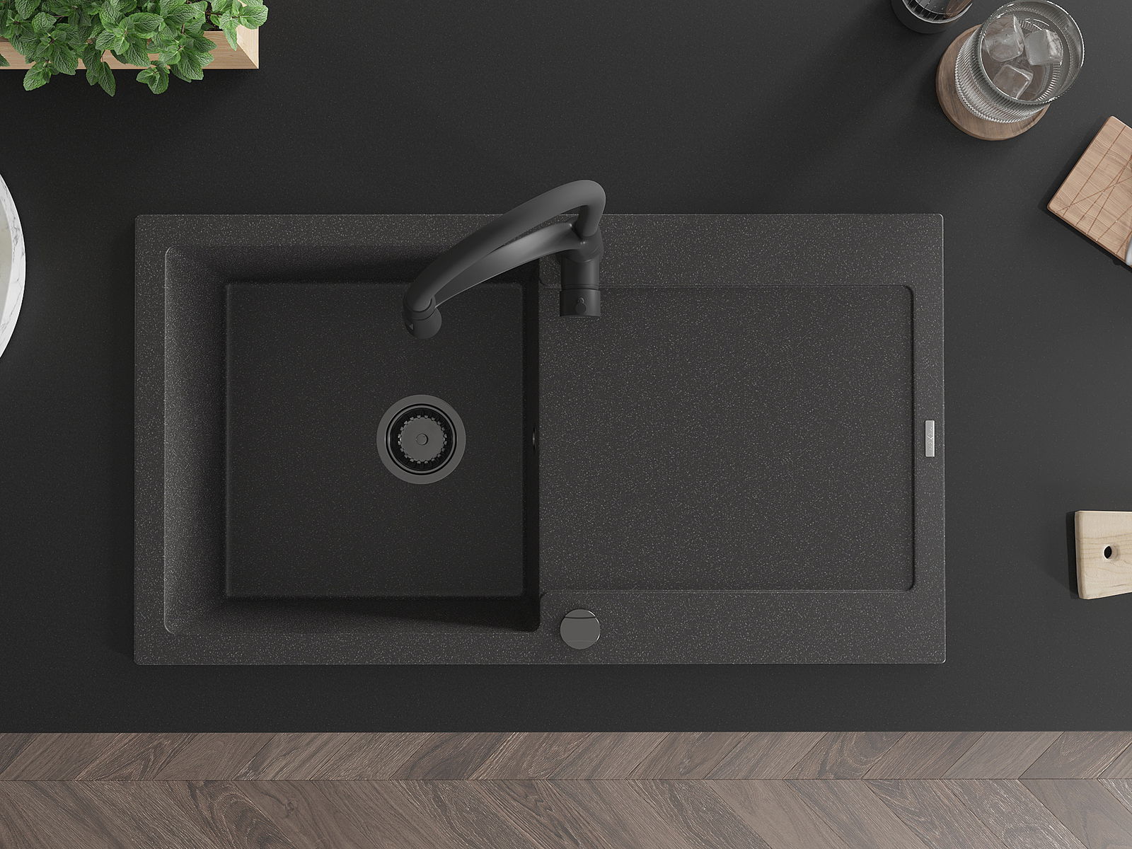 The sink is made of high quality granite. It is an elegant and, above all, practical complement to every kitchen, regardless of its style. High quality and granite durability ensure many years of use.