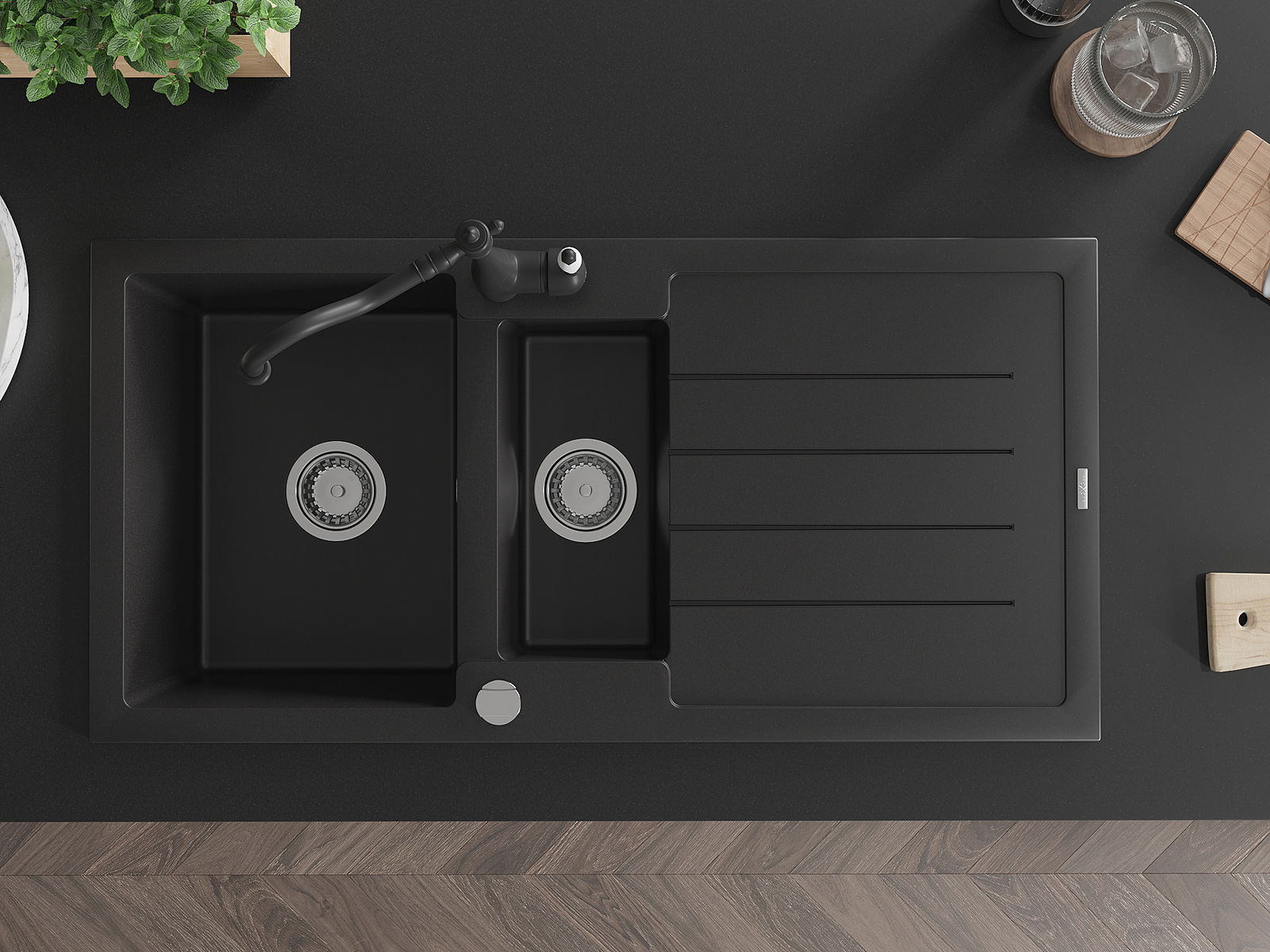 The sink is made of high quality granite. It is an elegant and, above all, practical complement to every kitchen, regardless of its style. High quality and granite durability ensure many years of use.