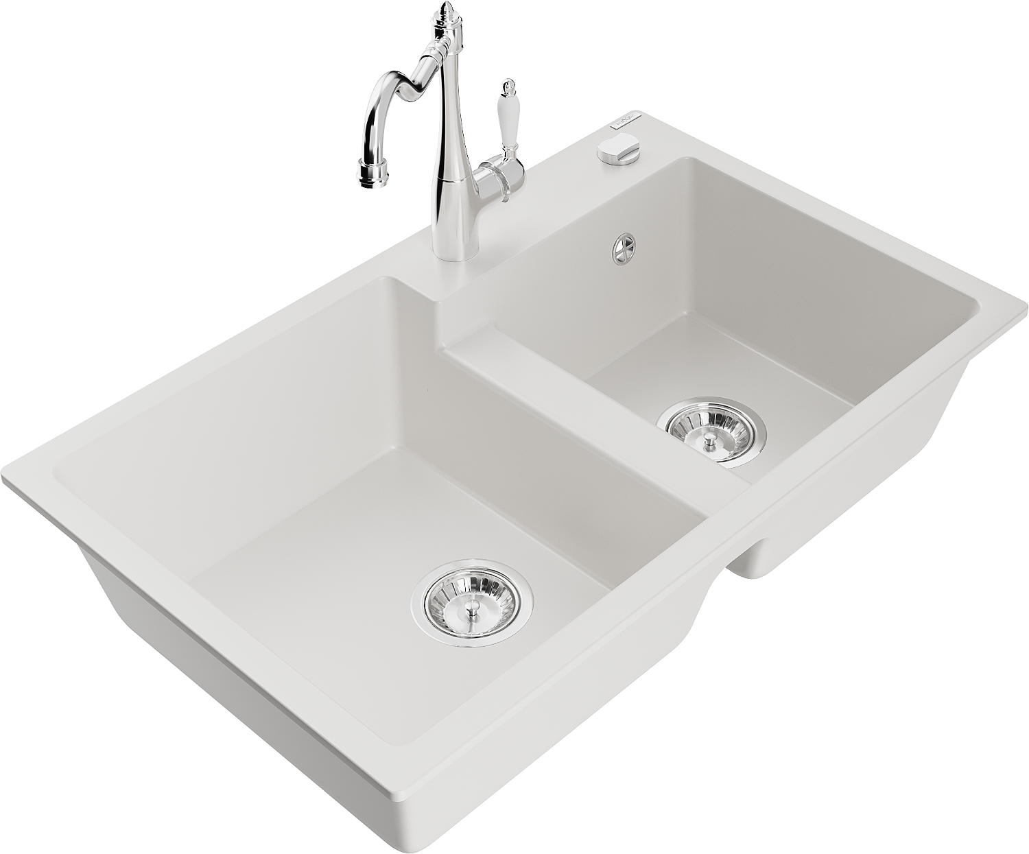 Mexen Tomas granite sink 2-chamber with Carla kitchen tap, white - 6516-20-670700-00
