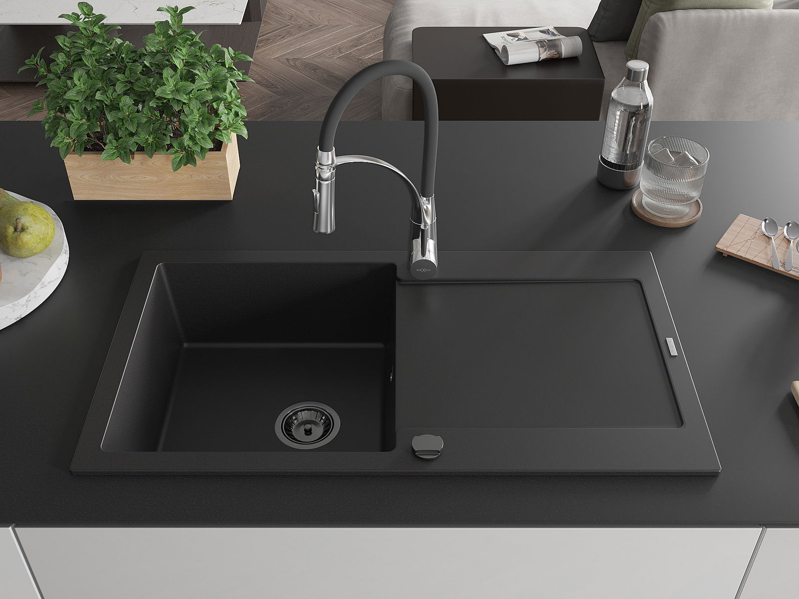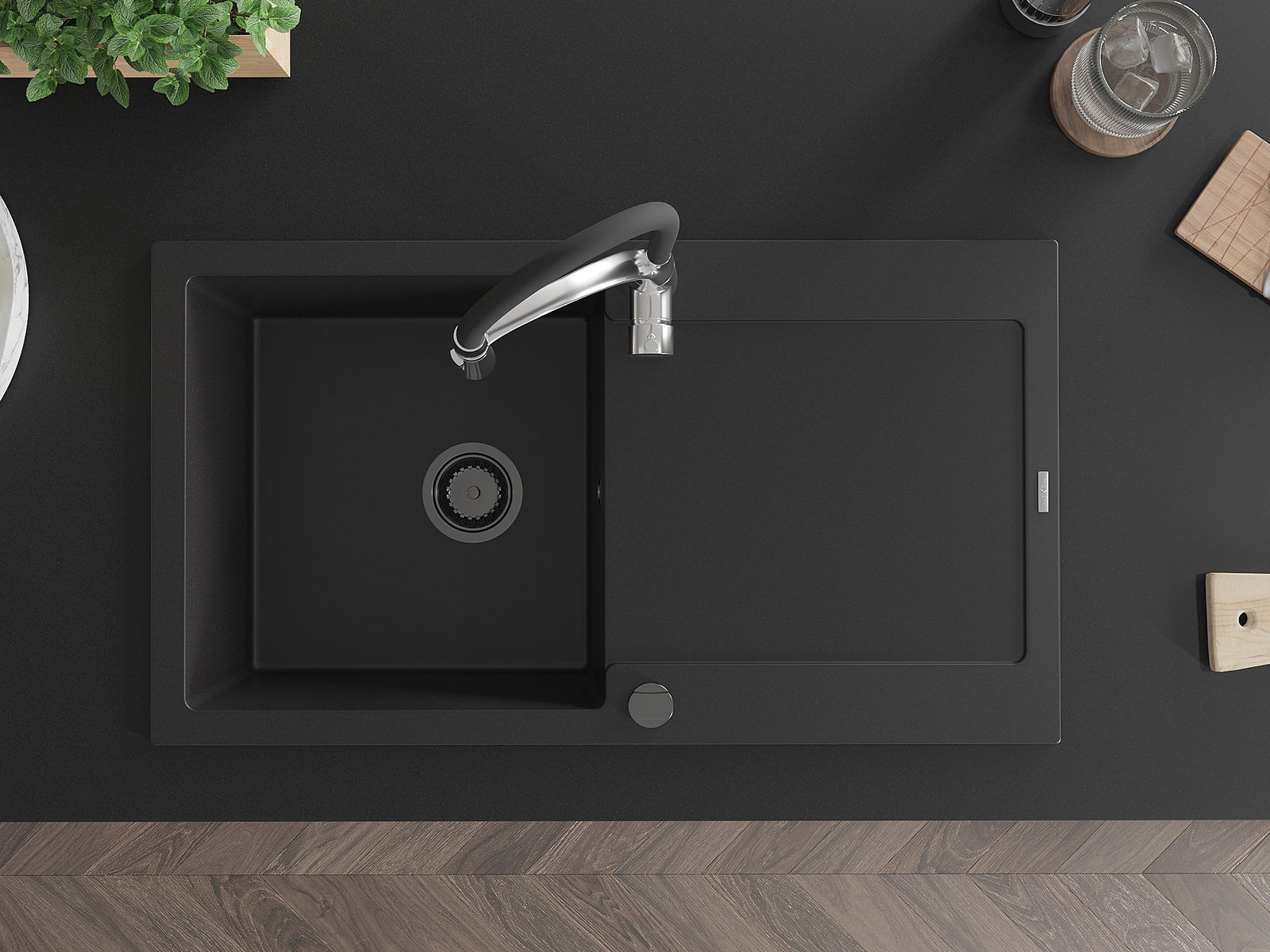 The sink is made of high quality granite. It is an elegant and, above all, practical complement to every kitchen, regardless of its style. High quality and granite durability ensure many years of use.