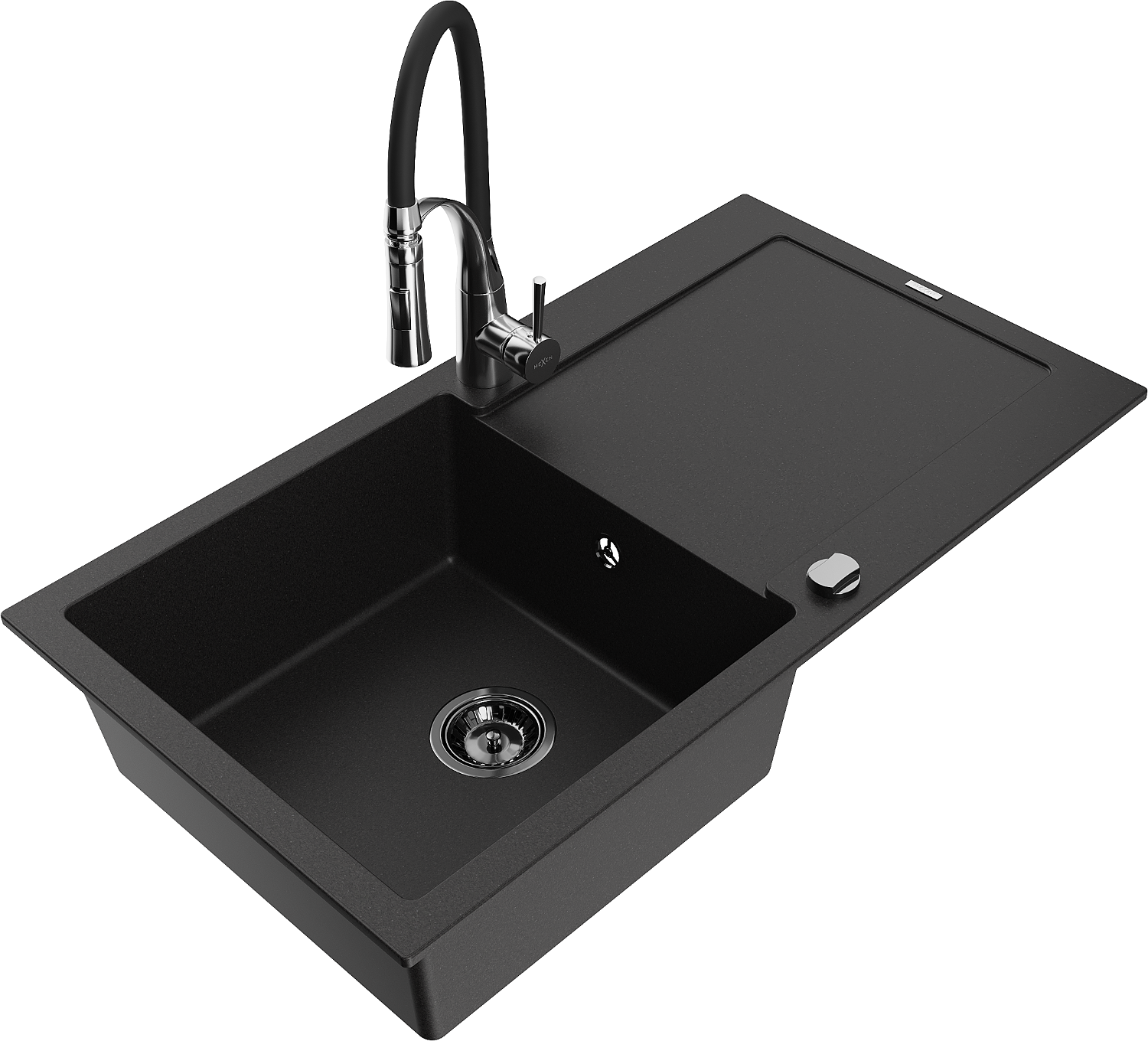 Mexen Leo granite sink 1-bowl with drainer and kitchen tap Aster, black - 6501-77-73450-07-B