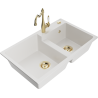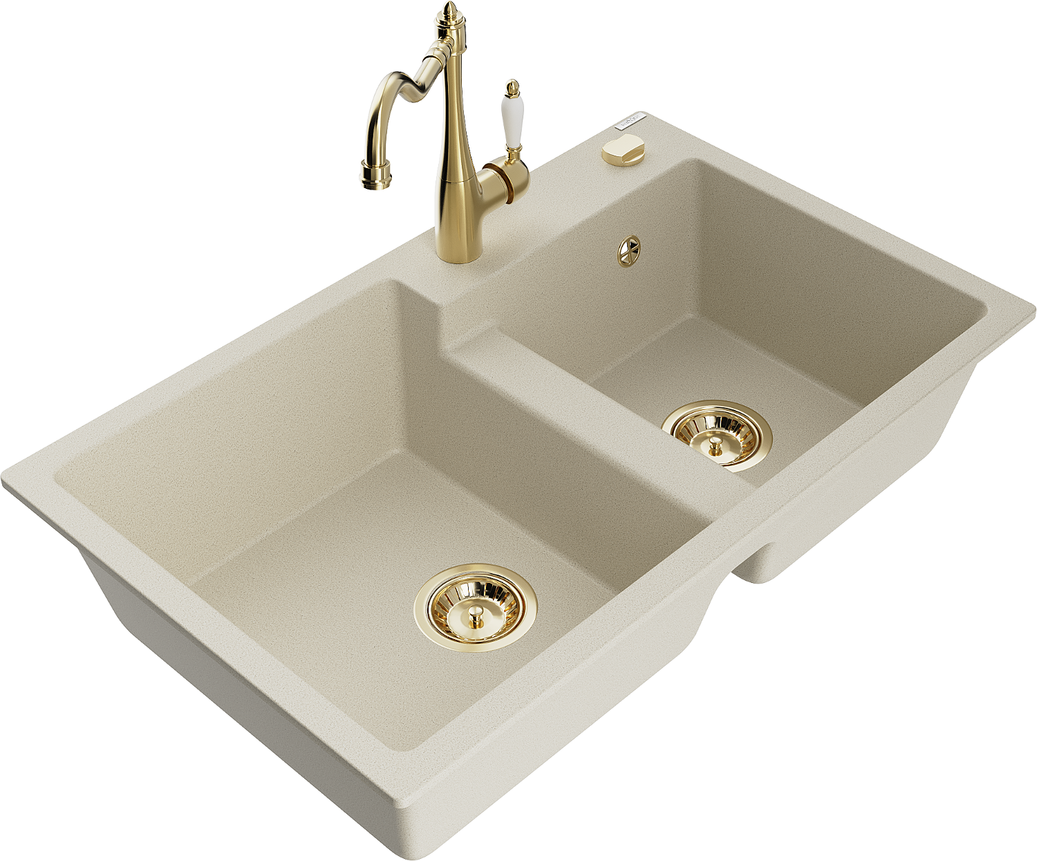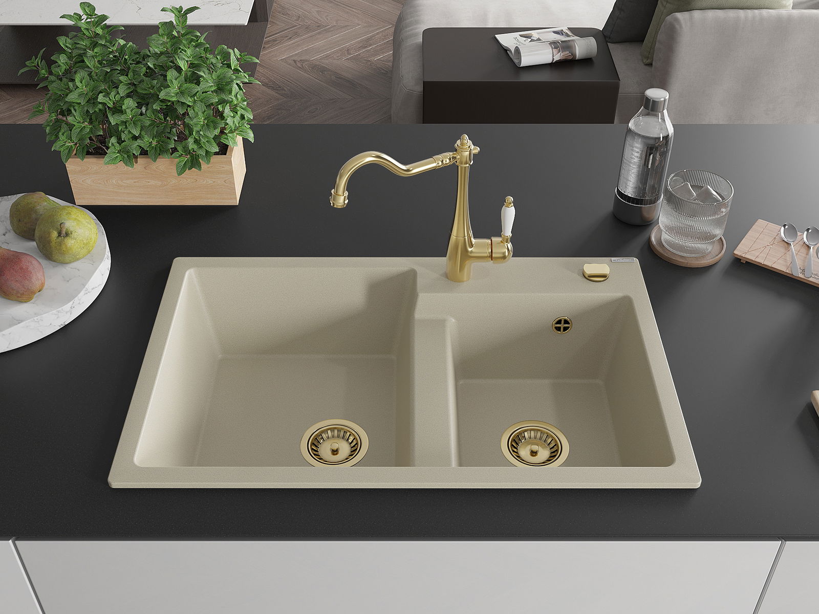 Mexen Tomas granite kitchen sink, 2-bowl with Carla kitchen tap, beige - 6516-69-670700-50