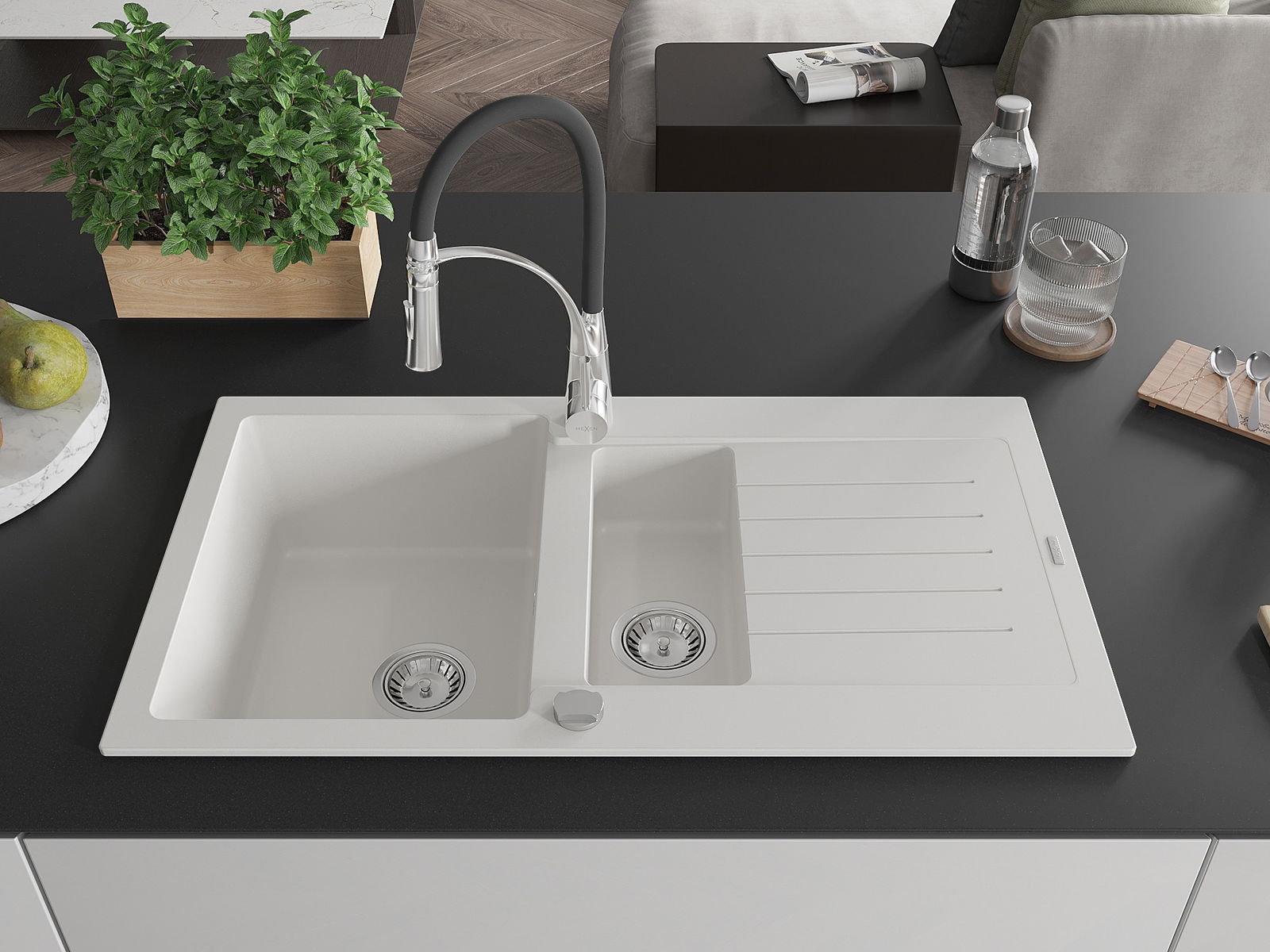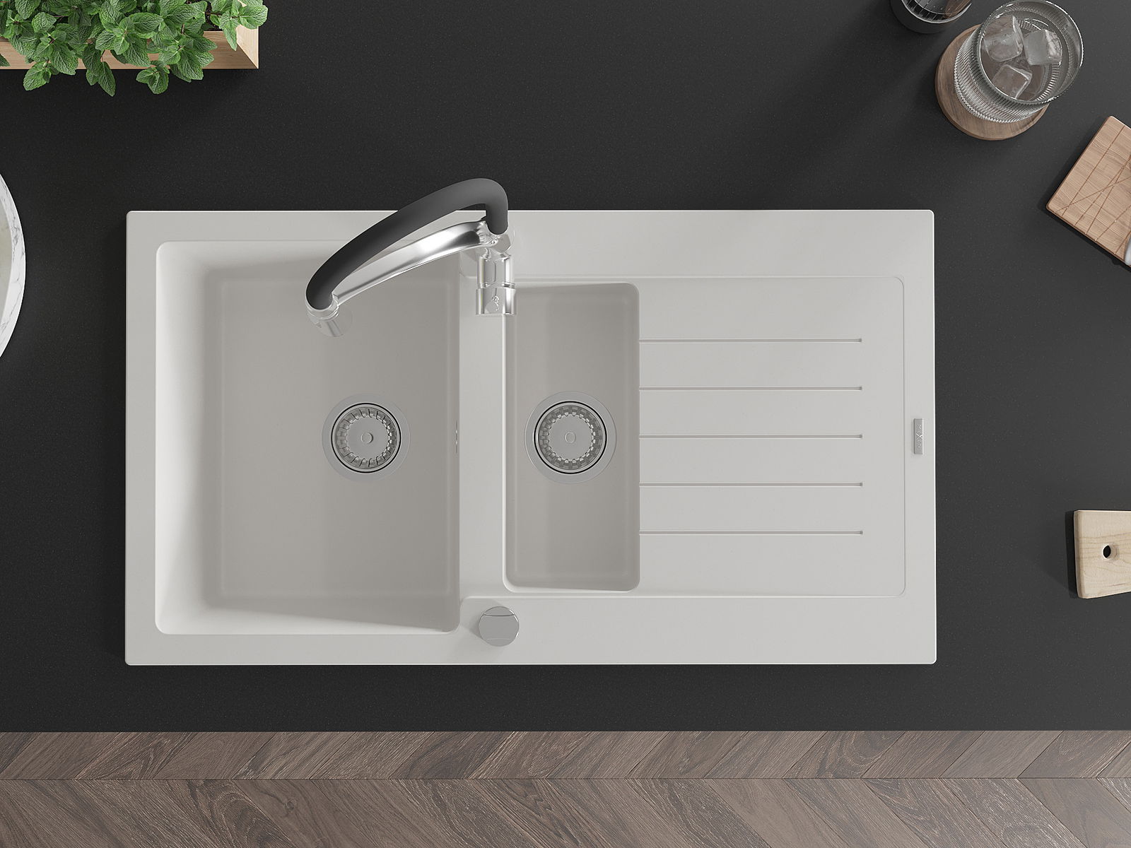 The surface of the sink is resistant to stains and discoloration, thanks to which it is easy to clean and retains its color for a long time. Aesthetic and practically complementing every kitchen.