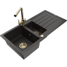 Mexen Andres granite sink 1.5-bowl with drainer and Duero kitchen tap, grey - 6515-71-671600-50