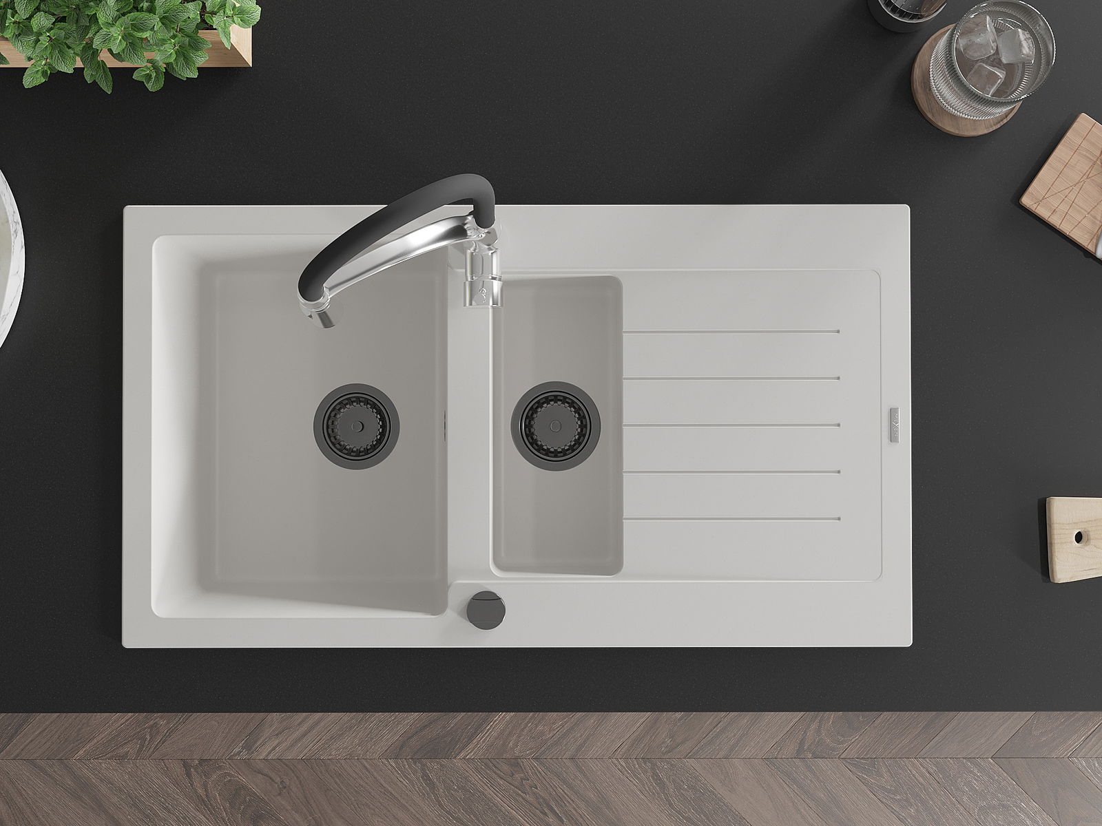 The sink is made of high quality granite. It is an elegant and, above all, practical complement to every kitchen, regardless of its style. High quality and granite durability ensure many years of use.