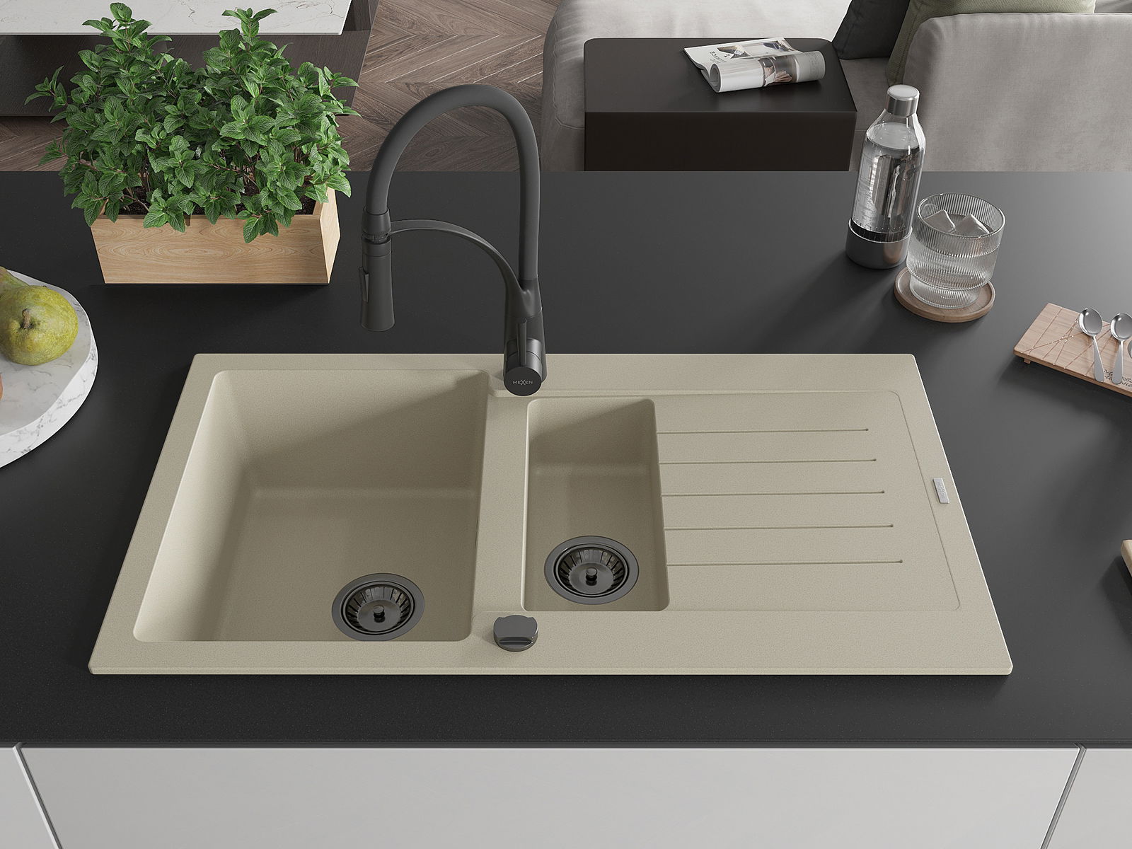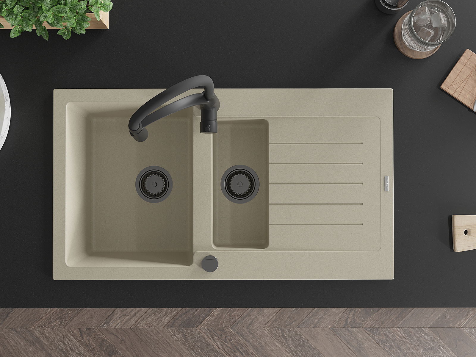 The sink is made of high quality granite. It is an elegant and, above all, practical complement to every kitchen, regardless of its style. High quality and granite durability ensure many years of use.