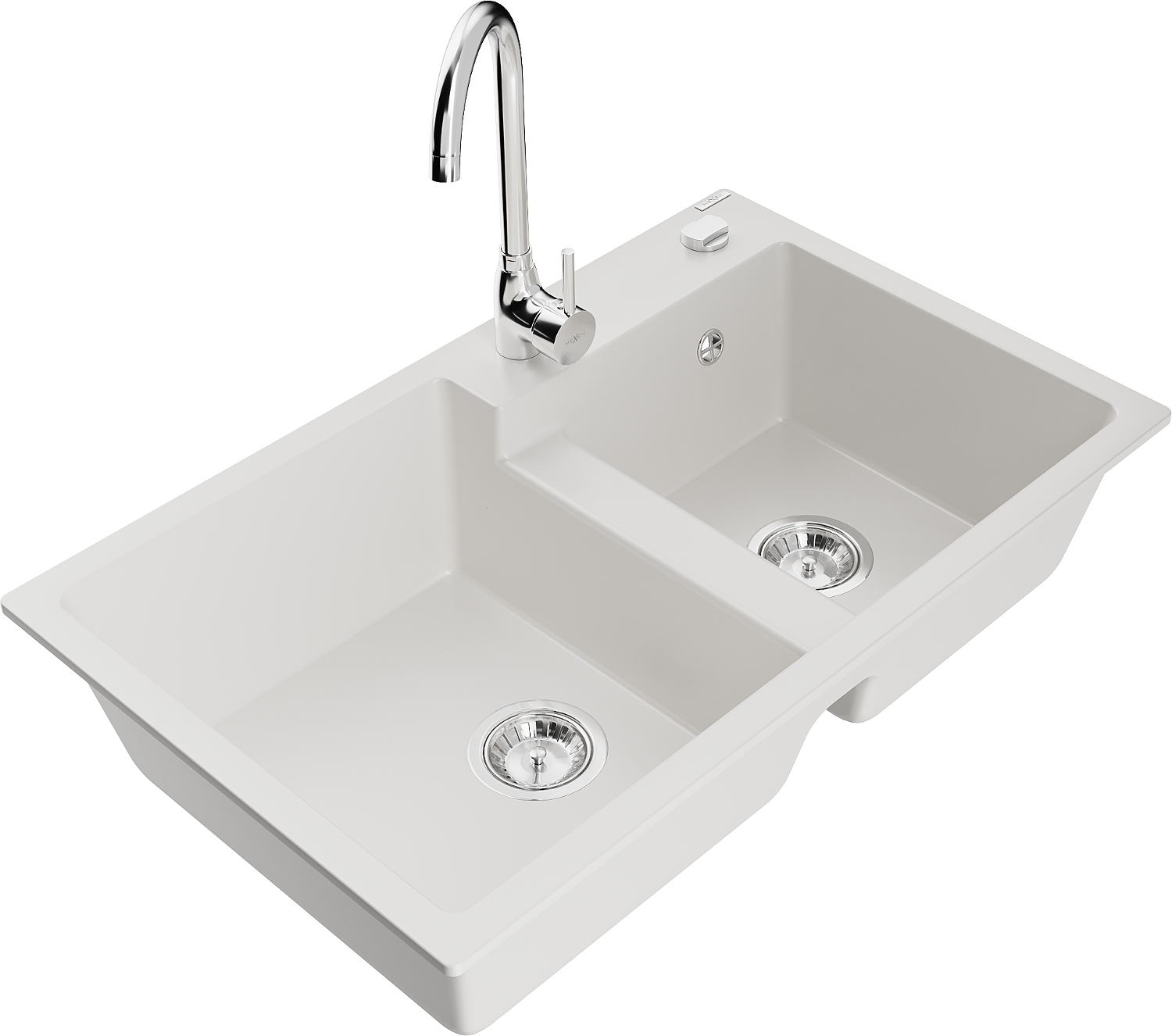 Mexen Tomas granite 2-bowl kitchen sink with Telma tap, white - 6516-20-670200-00
