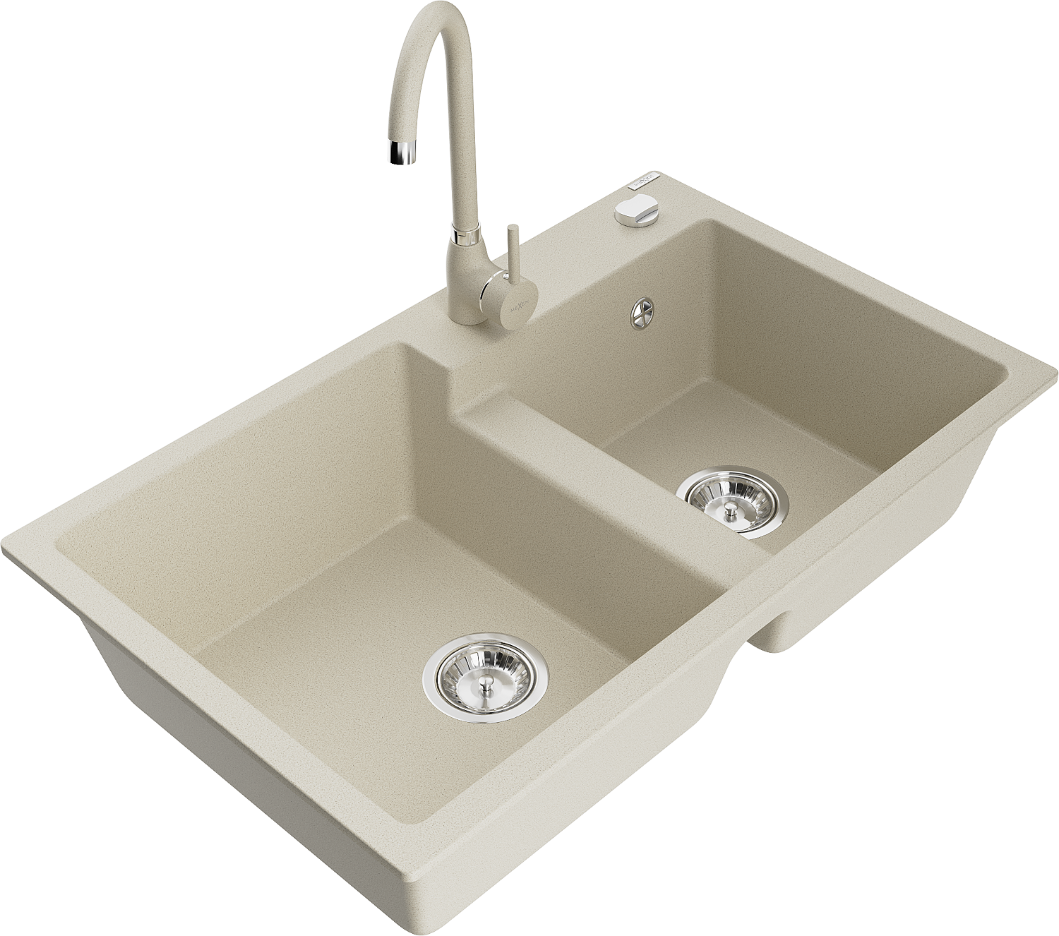 Mexen Tomas granite sink 2-bowl with Telma kitchen tap, beige - 6516-69-670200-69
