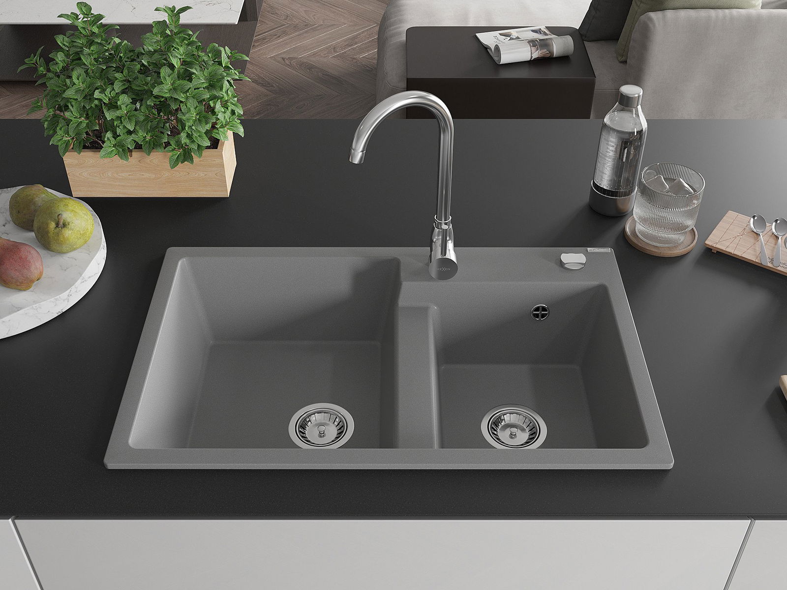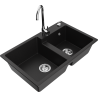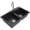 Mexen Tomas granite sink 2-bowl with Telma kitchen tap, grey - 6516-71-670200-00