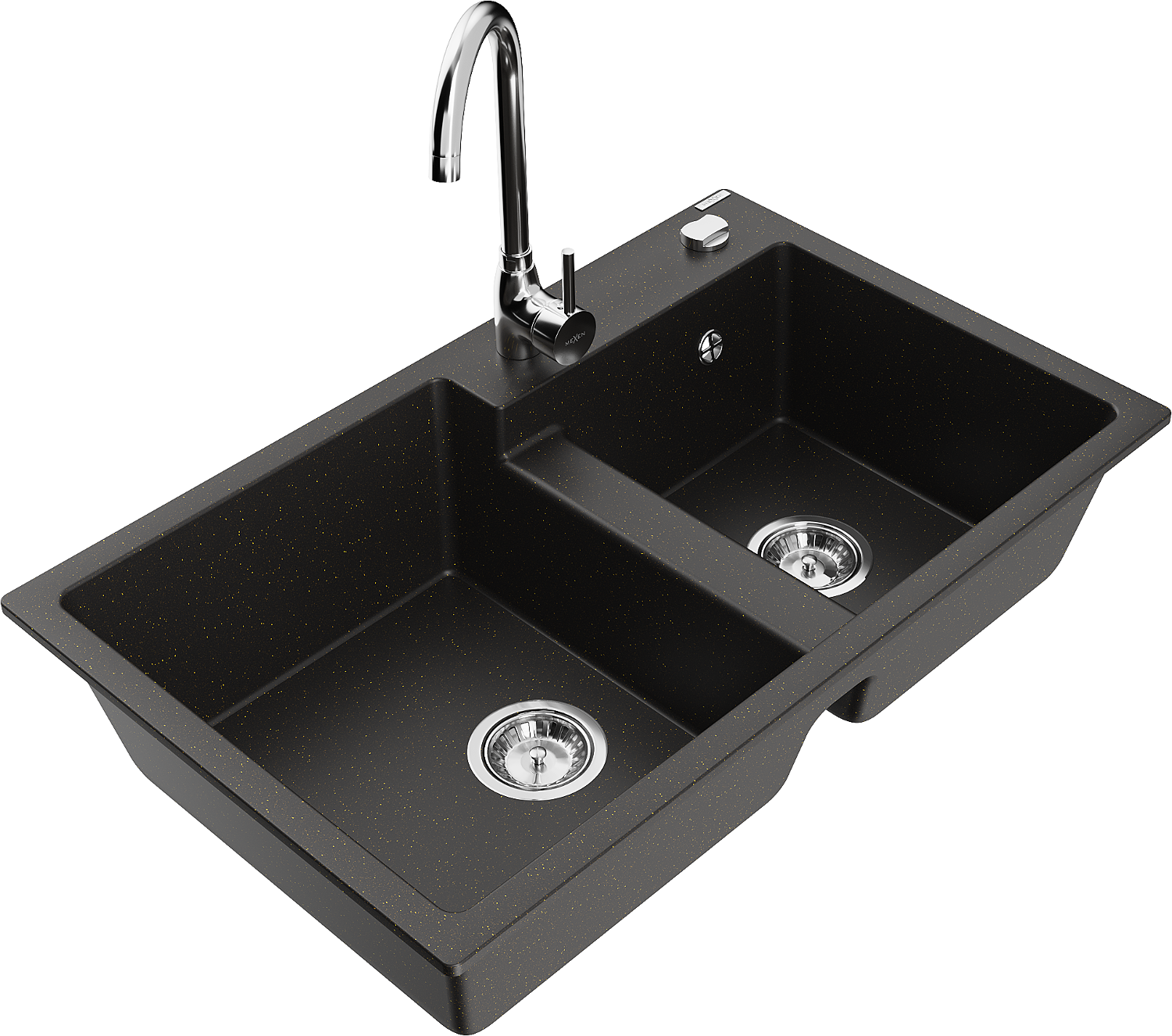 Mexen Tomas granite kitchen sink 2-bowl with Telma kitchen tap, black/gold metallic - 6516-75-670200-00