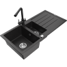 Mexen Andres 1.5-basin granite sink with drainer and Duero kitchen tap, black speckled - 6515-76-671600-70