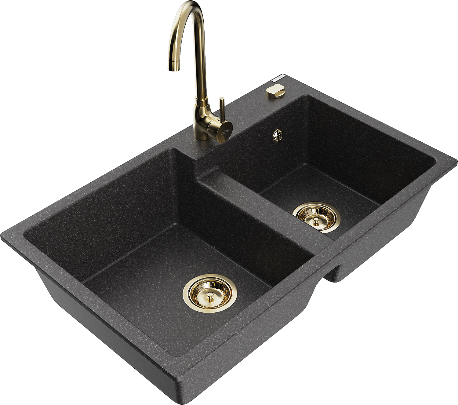 Mexen Tomas granite 2-bowl sink with Telma kitchen tap, black speckled - 6516-76-670200-50