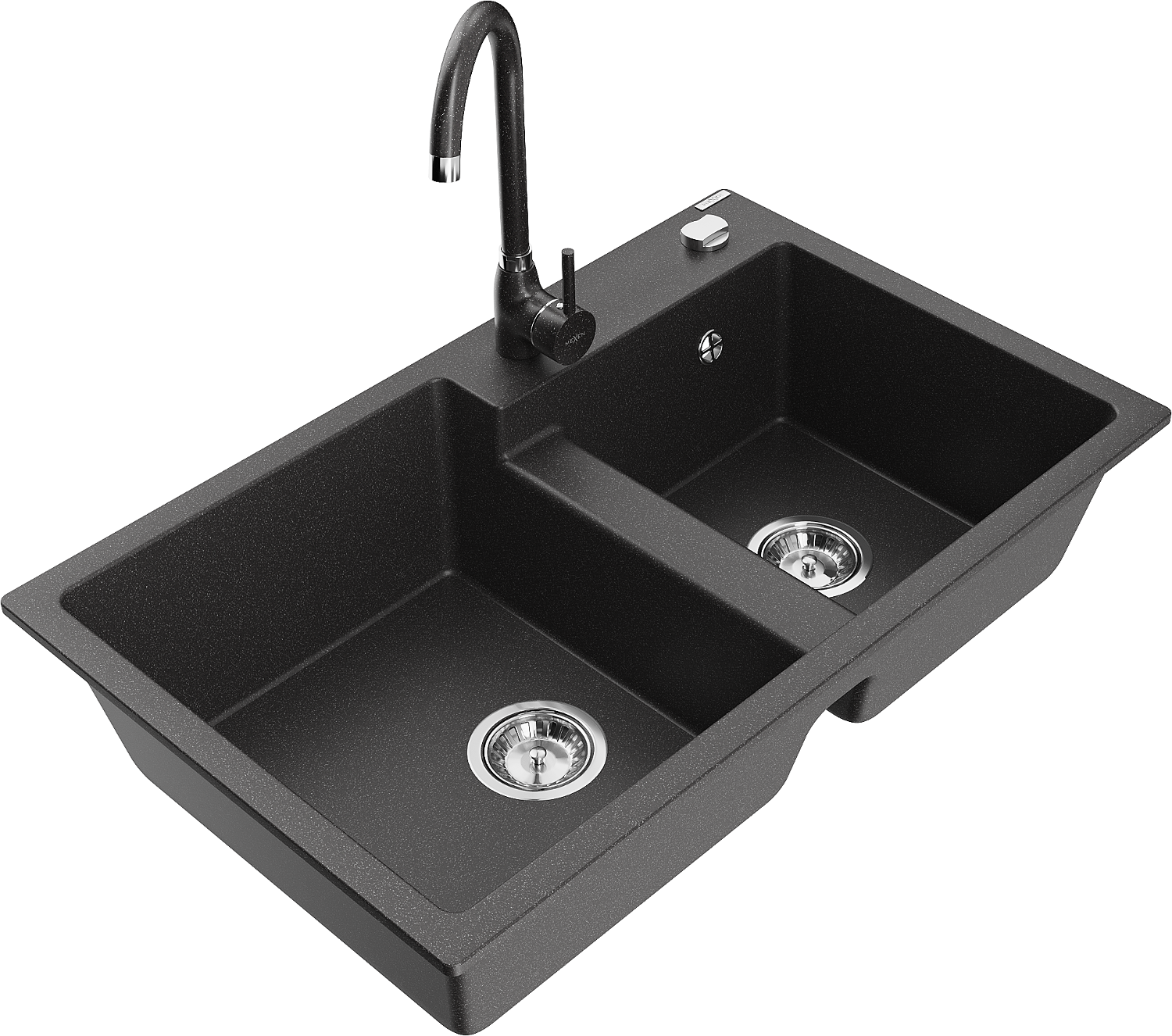 Mexen Tomas granite sink 2-bowl with Telma kitchen mixer, black speckled - 6516-76-670200-76