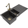 Mexen Andres 1.5-bowl granite kitchen sink with drainer and Duero kitchen tap, black - 6515-77-671600-50-B