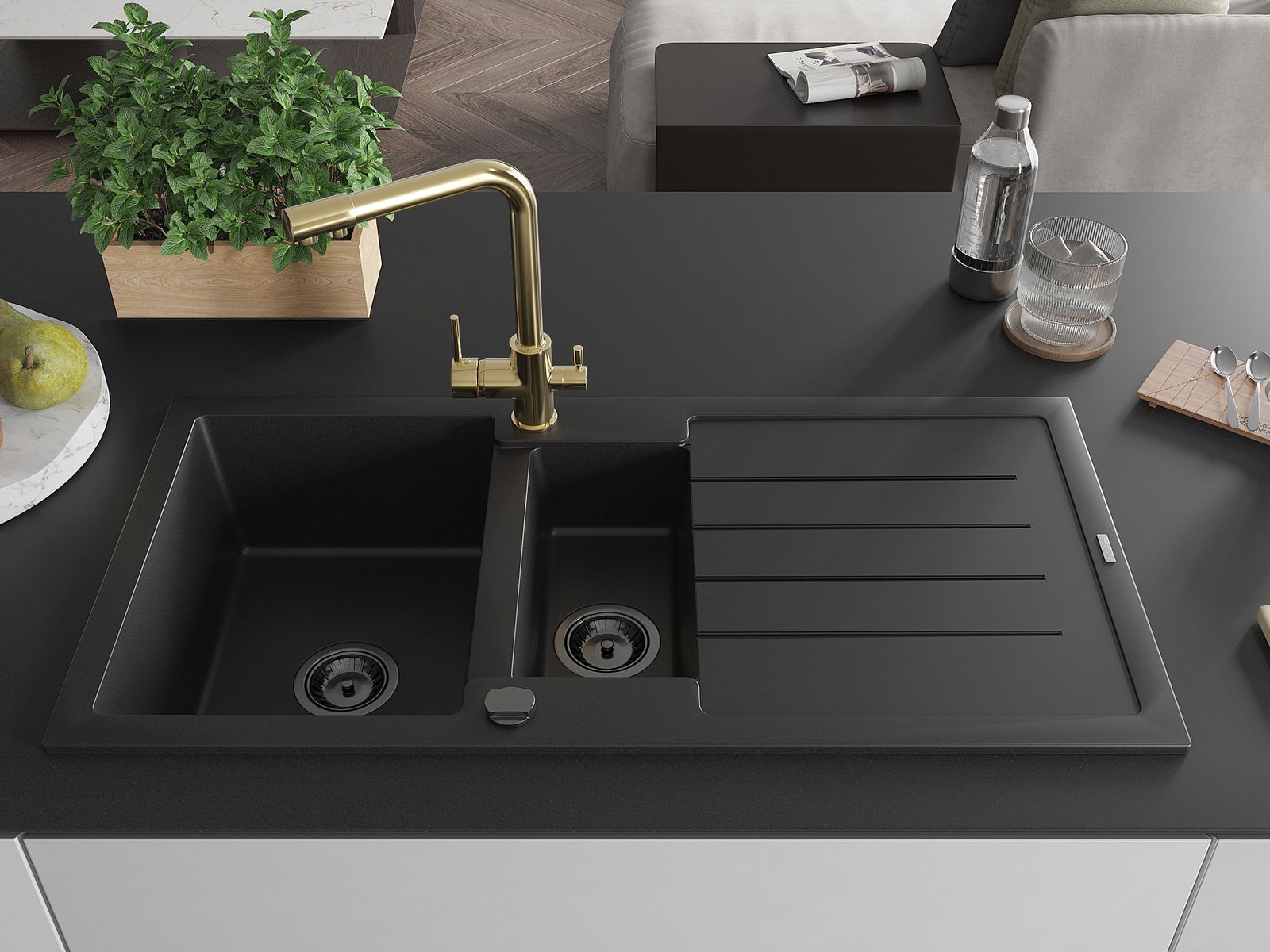 The sink is made of high quality granite. It is an elegant and, above all, practical complement to every kitchen, regardless of its style. High quality and granite durability ensure many years of use.