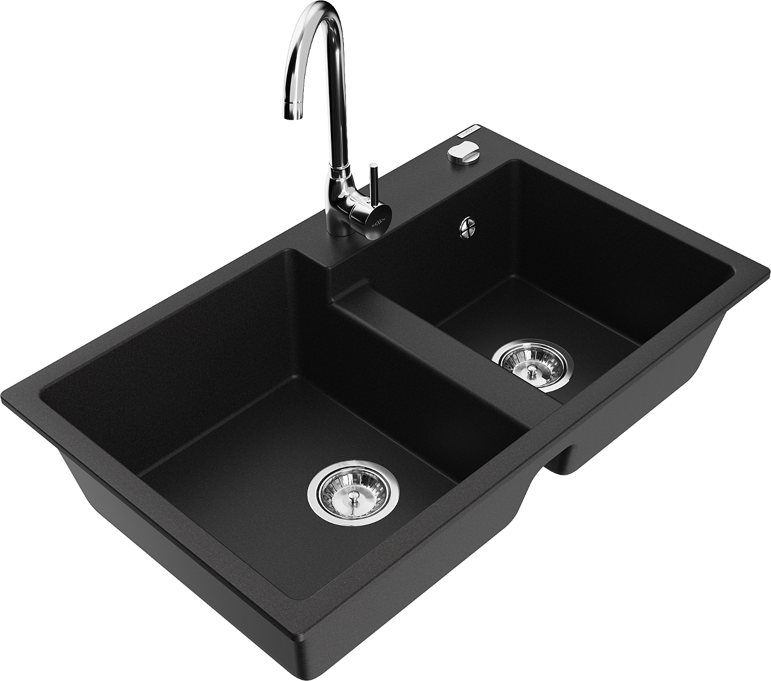 Mexen Tomas 2-bowl granite sink with Telma kitchen tap, black - 6516-77-670200-00