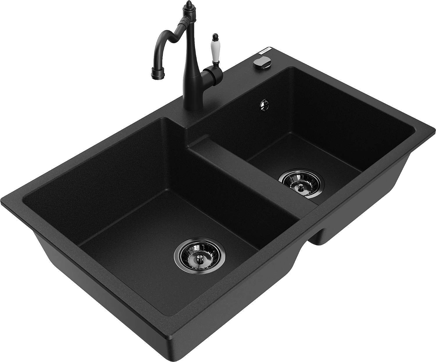 Mexen Tomas granite kitchen sink with 2 bowls and Carla kitchen tap, black - 6516-77-670700-70-B