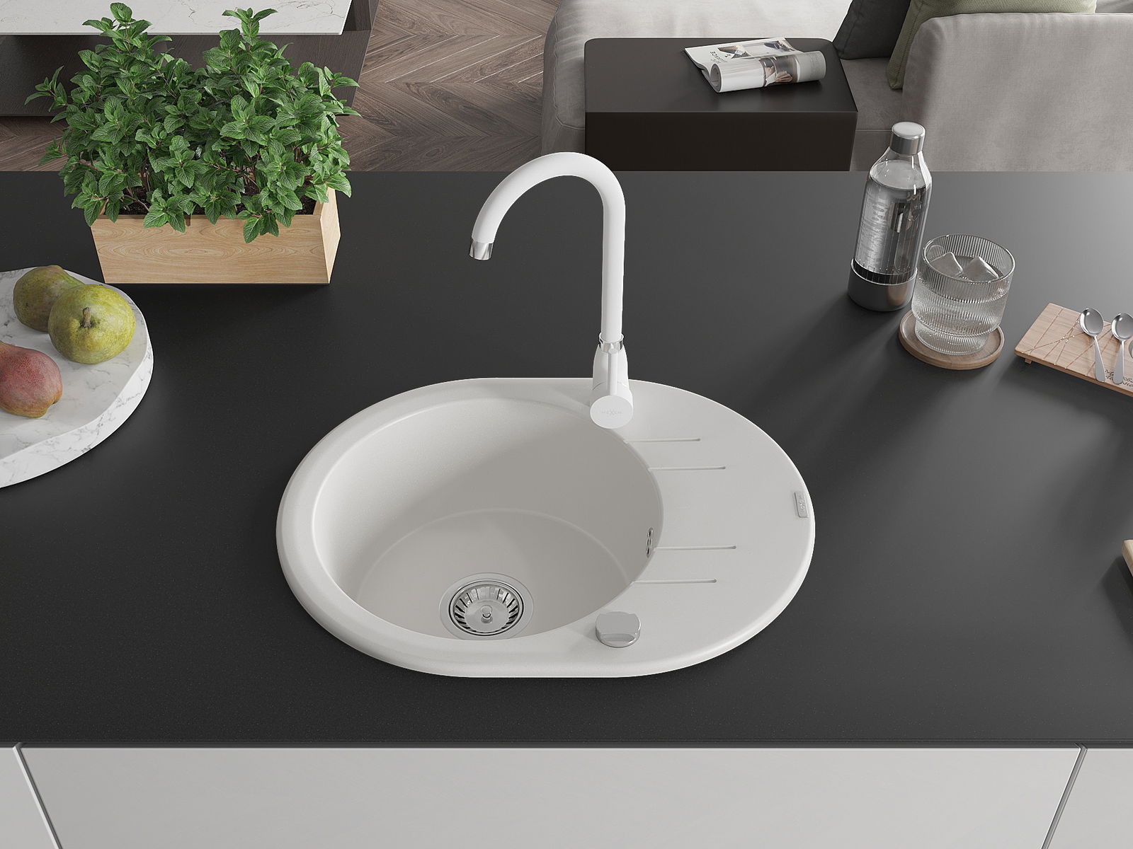 The sink is made of high quality granite. It is an elegant and, above all, practical complement to every kitchen, regardless of its style. High quality and granite durability ensure many years of use.