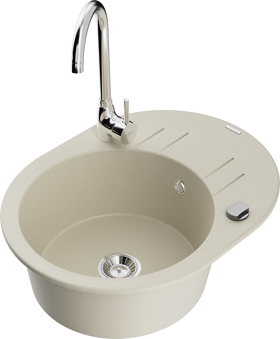 Mexen Kevin granite sink 1-bowl with drainer and Telma kitchen tap, beige - 6517-69-670200-00