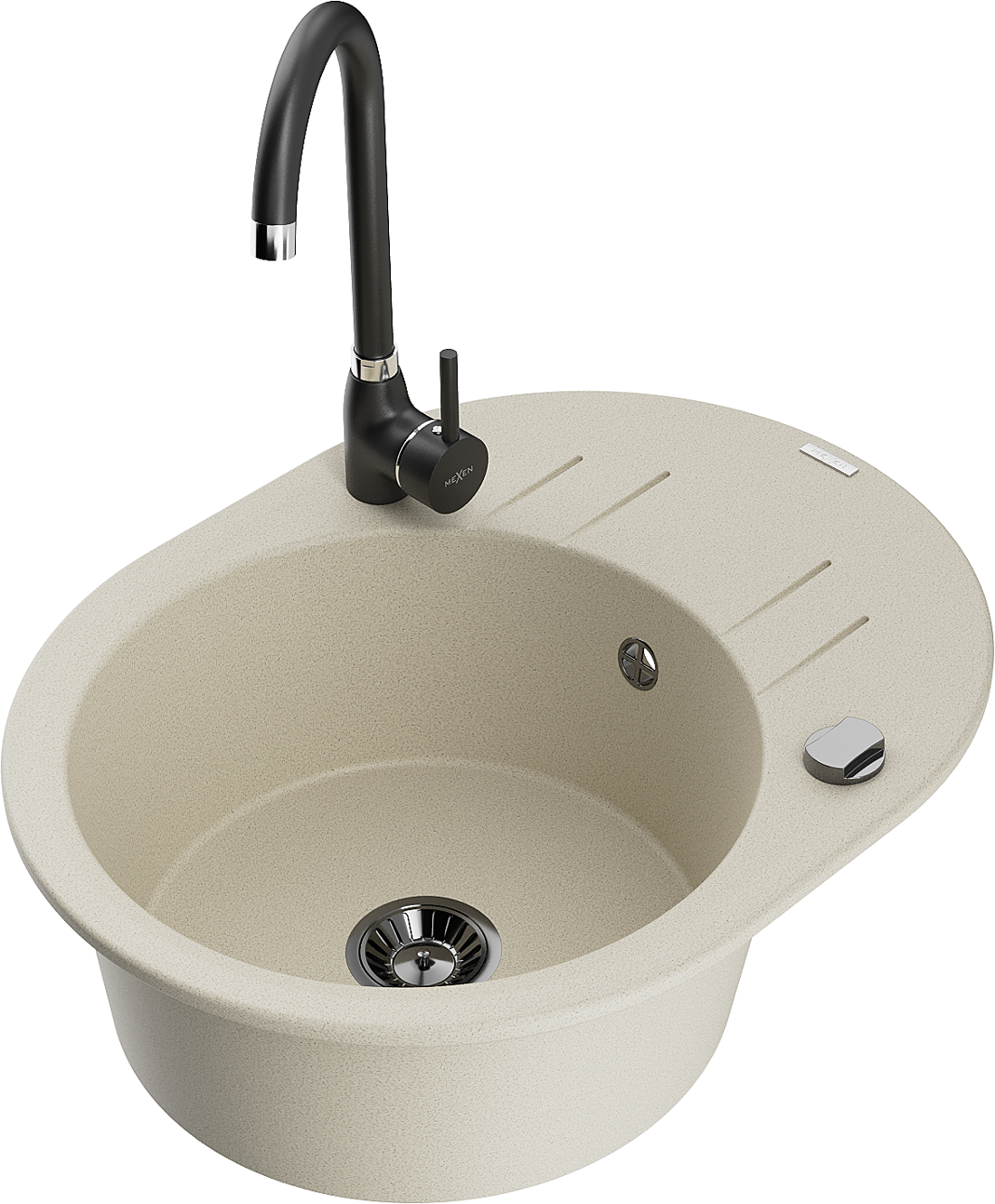 Mexen Kevin 1-bowl granite sink with drainer and Telma kitchen tap, beige - 6517-69-670200-70