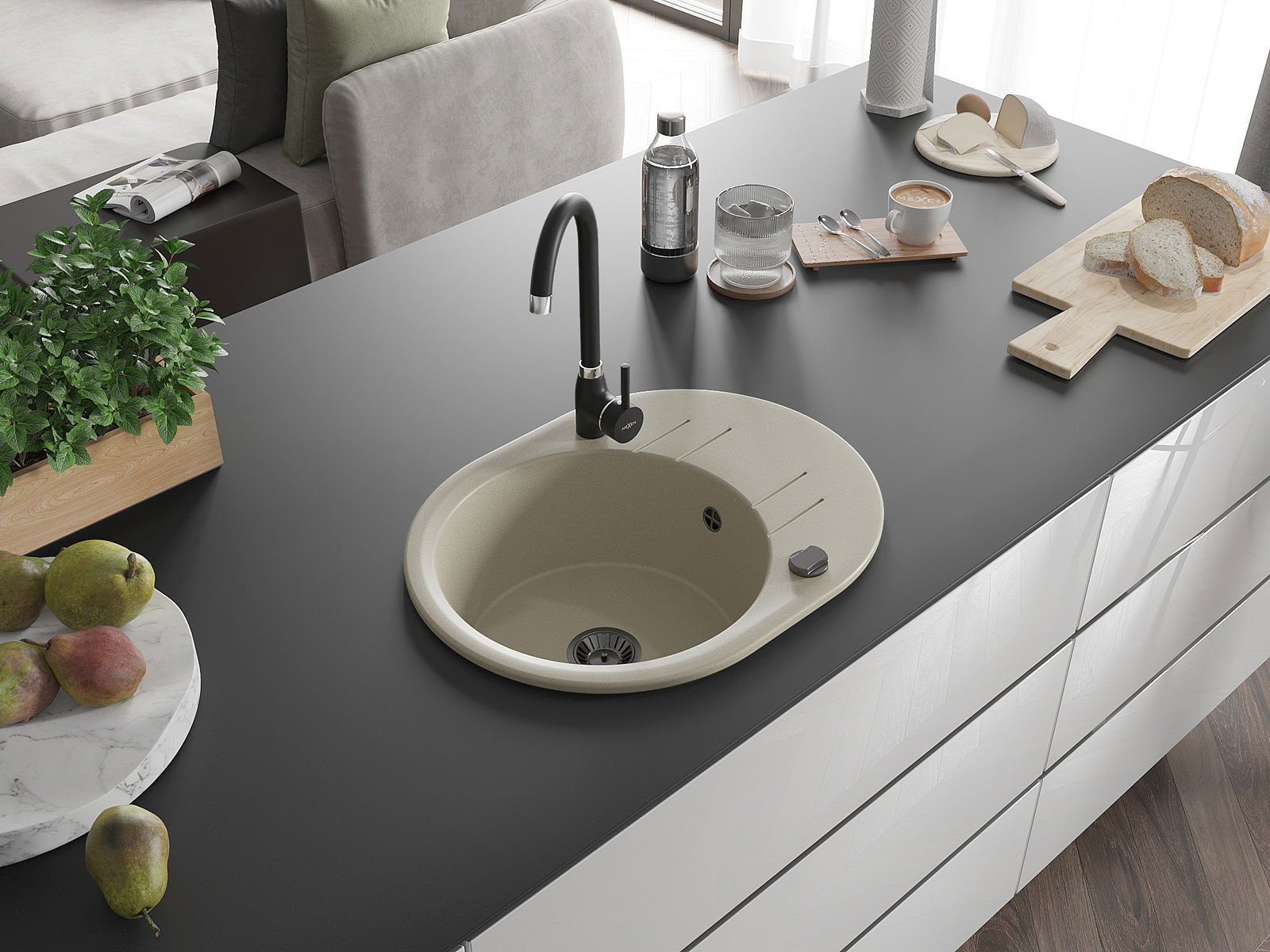 The sink is made of high quality granite. It is an elegant and, above all, practical complement to every kitchen, regardless of its style. High quality and granite durability ensure many years of use.