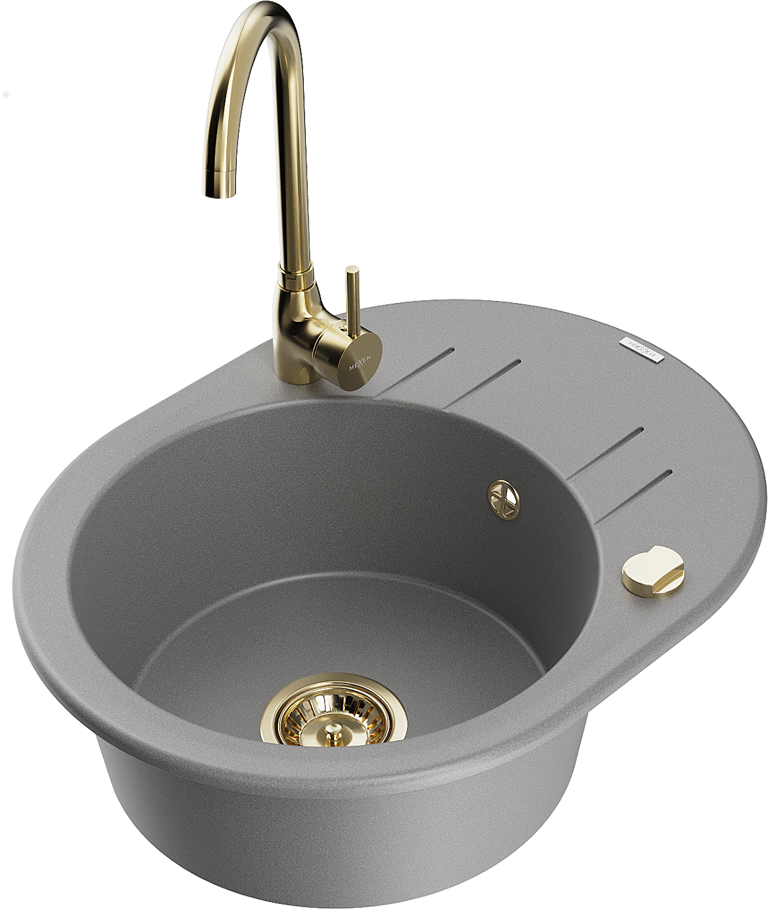 Mexen Kevin 1-bowl granite sink with drainer and Telma kitchen tap, grey - 6517-71-670200-50