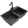 Mexen Tomas Granite Sink 2-Chamber with Duero Kitchen Tap, Black/Silver Metallic - 6516-73-671600-70-B