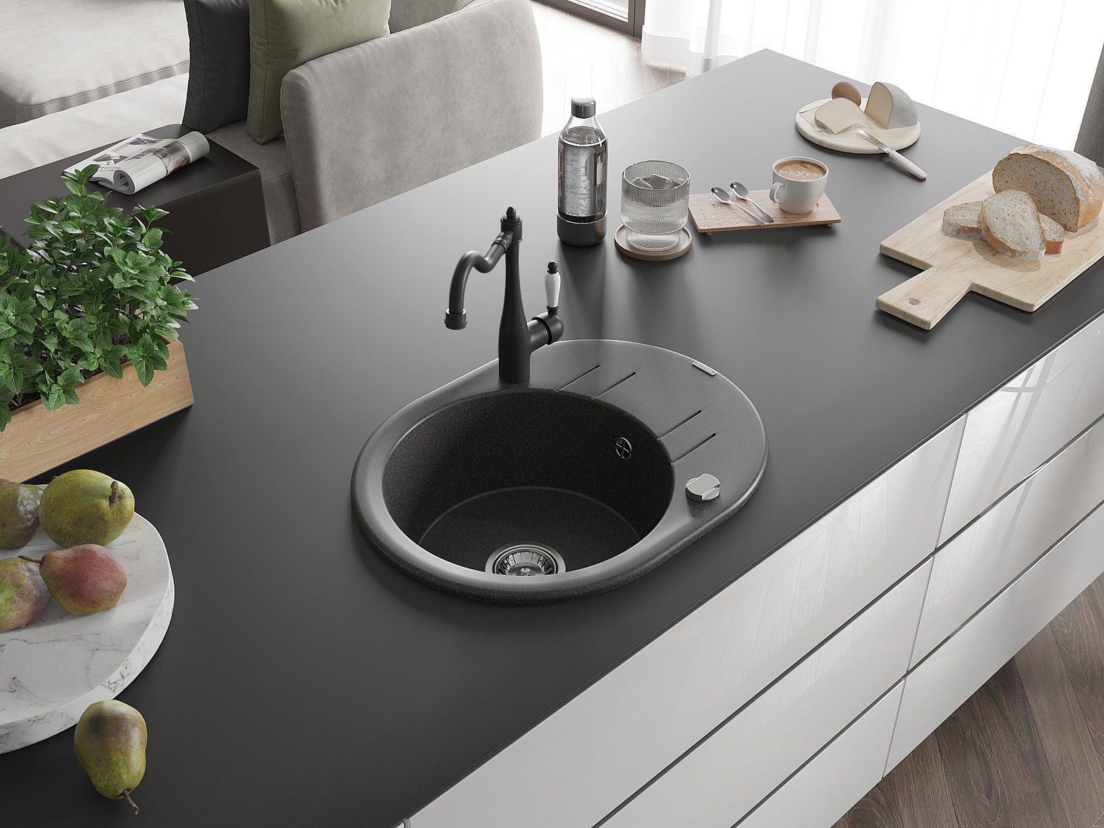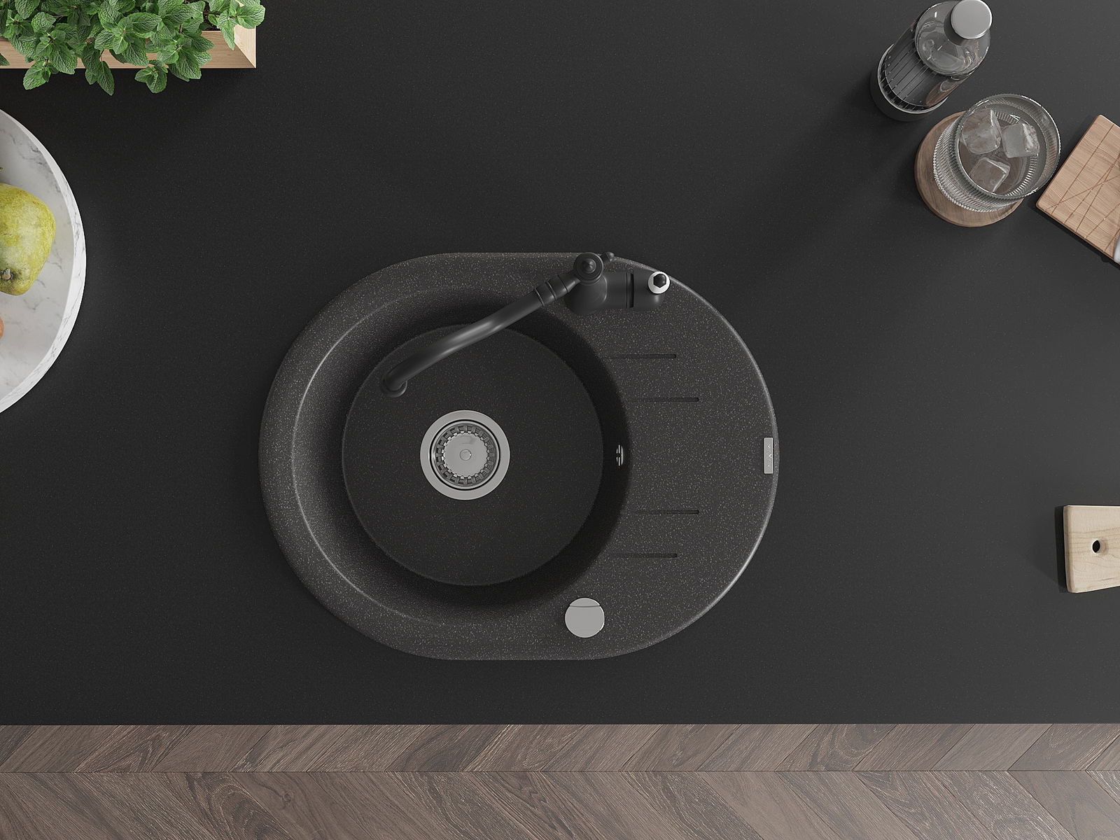 The sink is made of high quality granite. It is an elegant and, above all, practical complement to every kitchen, regardless of its style. High quality and granite durability ensure many years of use.