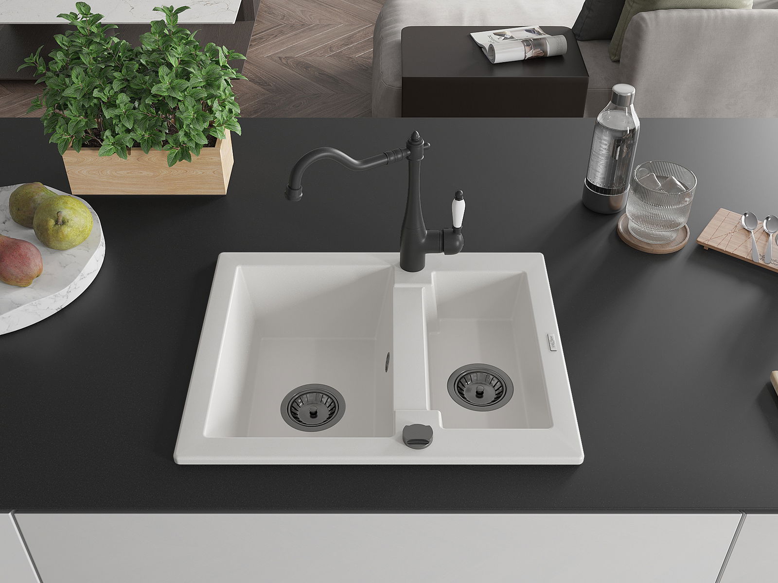 The sink is made of high quality granite. It is an elegant and, above all, practical complement to every kitchen, regardless of its style. High quality and granite durability ensure many years of use.