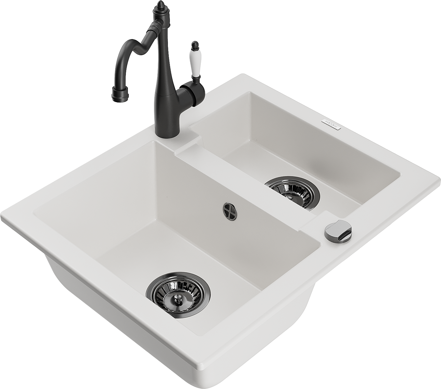 Mexen Carlos granite kitchen sink 1.5-bowl with Carla kitchen tap, white - 6518-20-670700-70